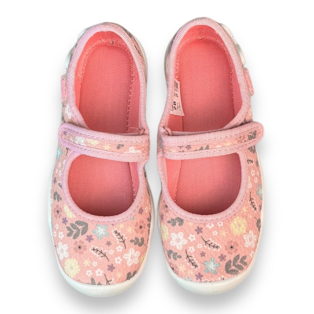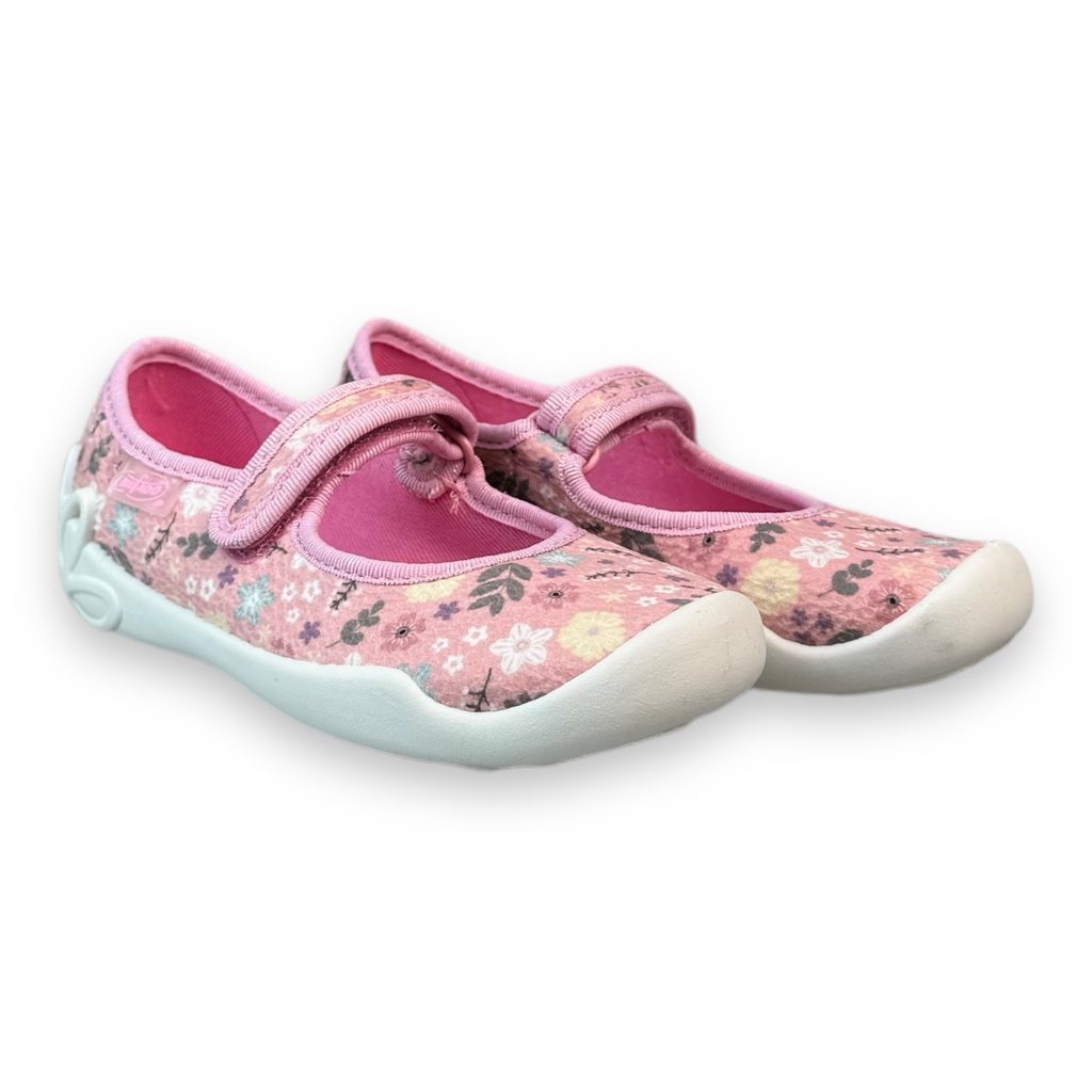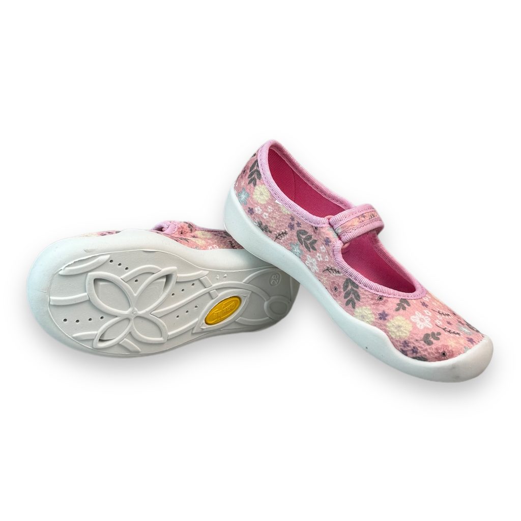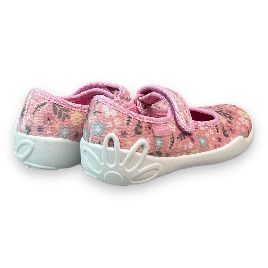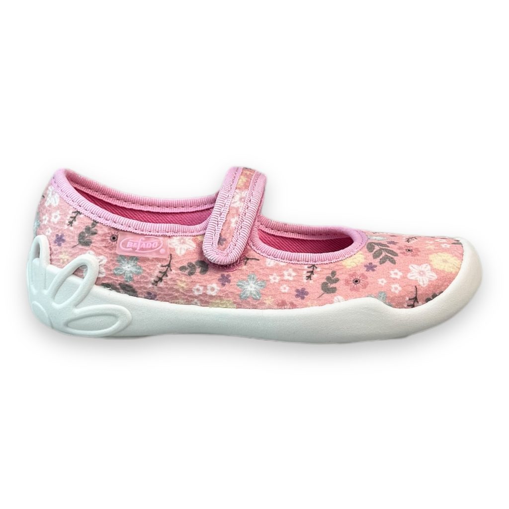 Dívčí balerínky, domácí obuv Befado - růžové, kytky