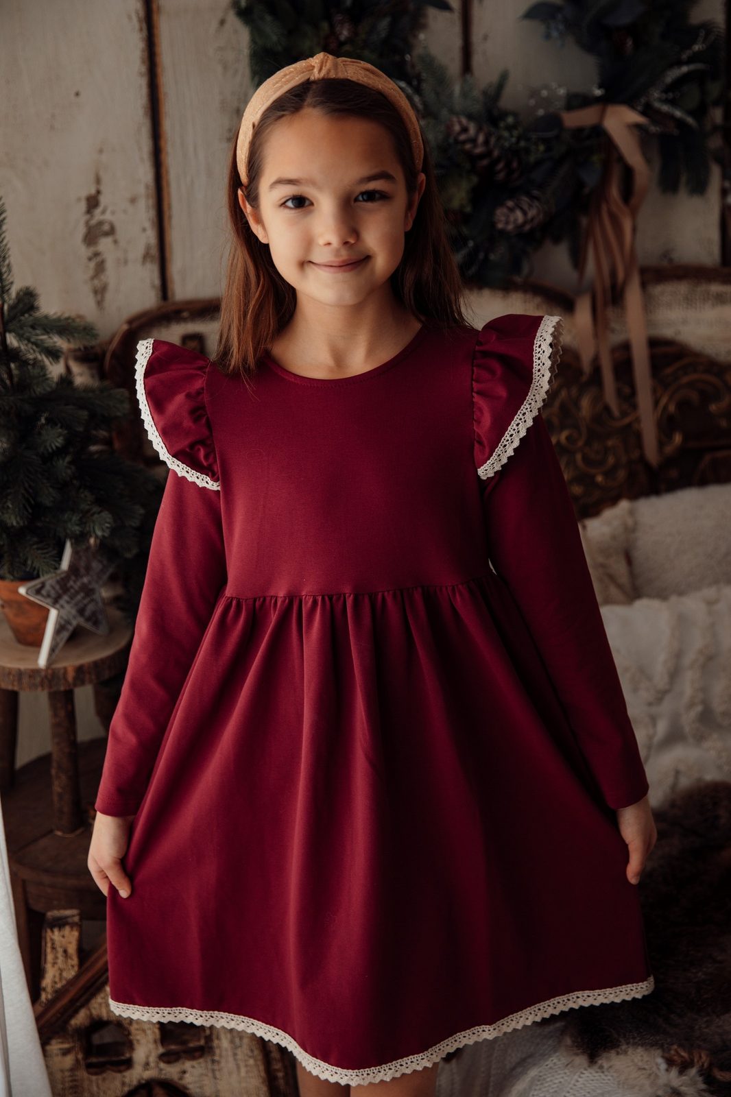Krásné vínové šaty, vhodné na Vánoční focení či ke stromečku.