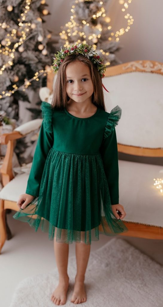 Krásné slavnostní tylové šatičky s třpytkami vhodné jak na vánoční focení nebo ke stromečku.