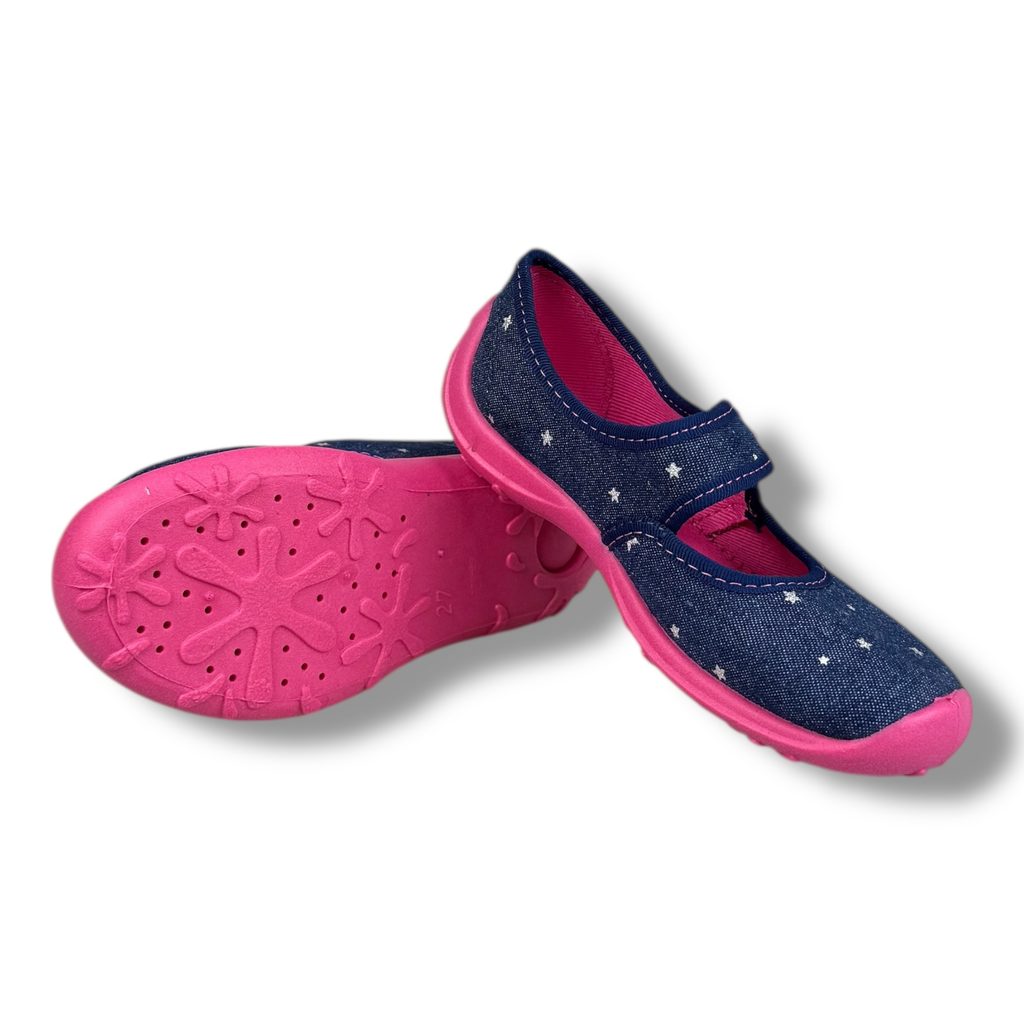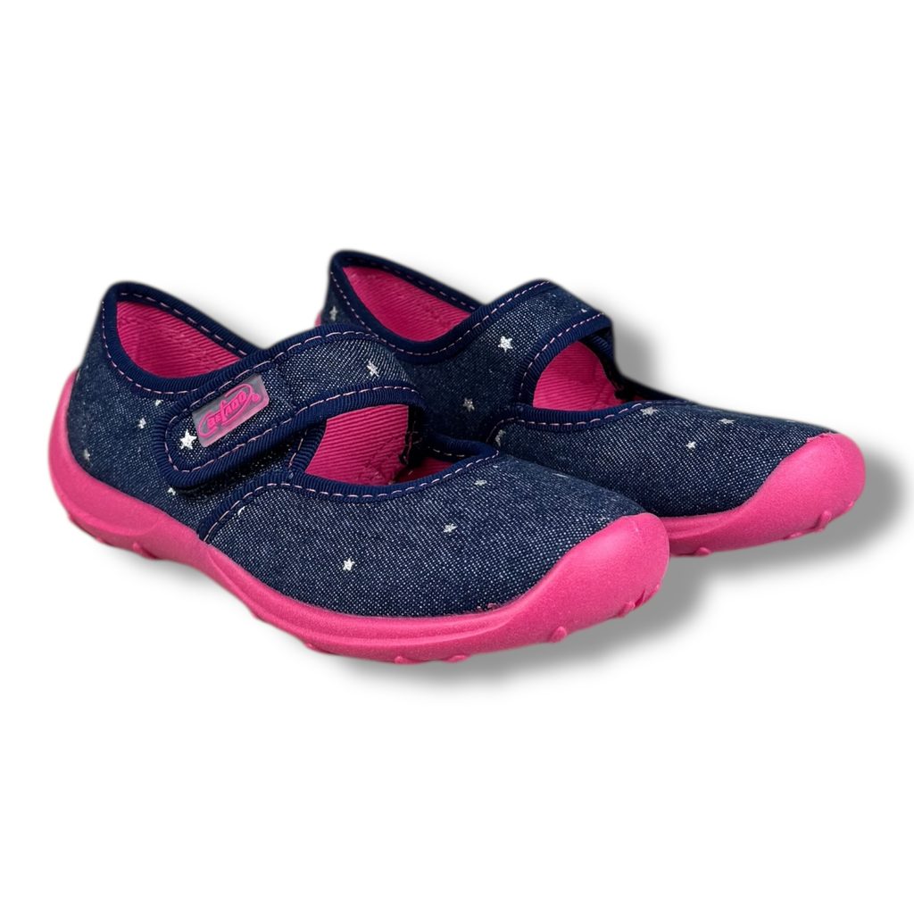 Domácí obuv, baleríny Befado - modré, hvězdy