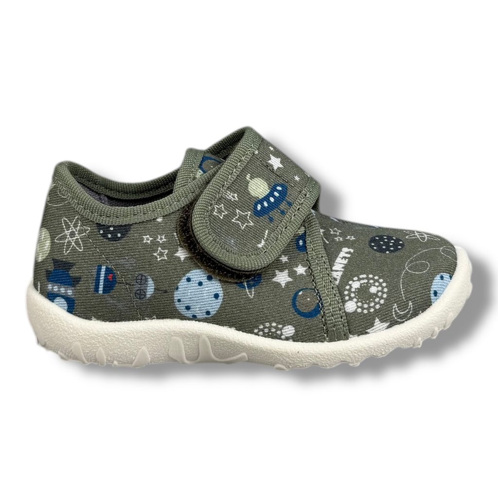 Dětská přezůvková, nízká, textilní, lemovaná obuv Superfit. Obuv je vhodná všechny dětské zdravé chodidla. Je vybavena pevným opatkem tak, jako je běžné u kvalitní celokožené obuvi.