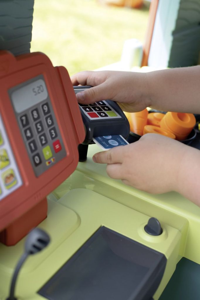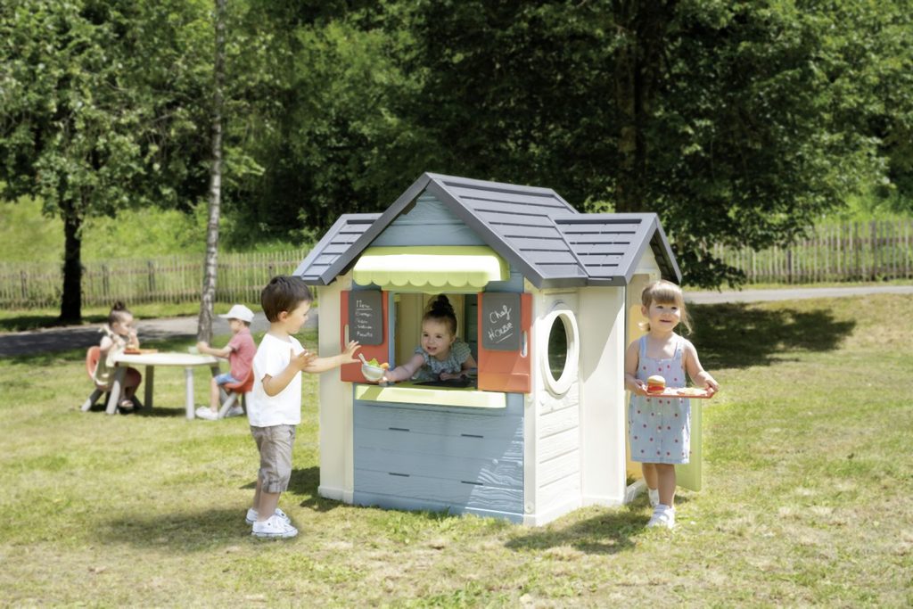 Domeček Chef kombinuje zahradní domeček, restauraci a obchod. S pultem, markýzou, malou kuchyňkou, pokladnou, herním jídlem a další. Domeček má malé vstupní dveře a dvě okna s otočnými žaluziemi.…