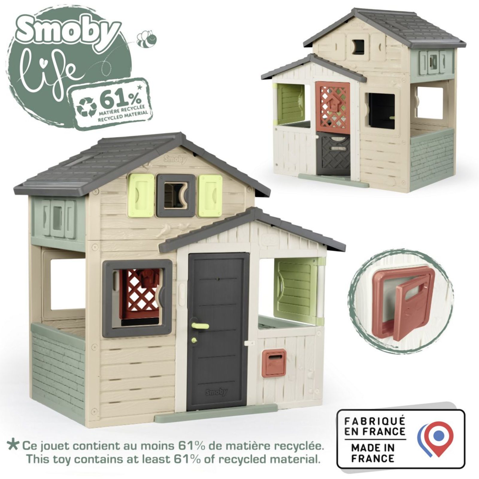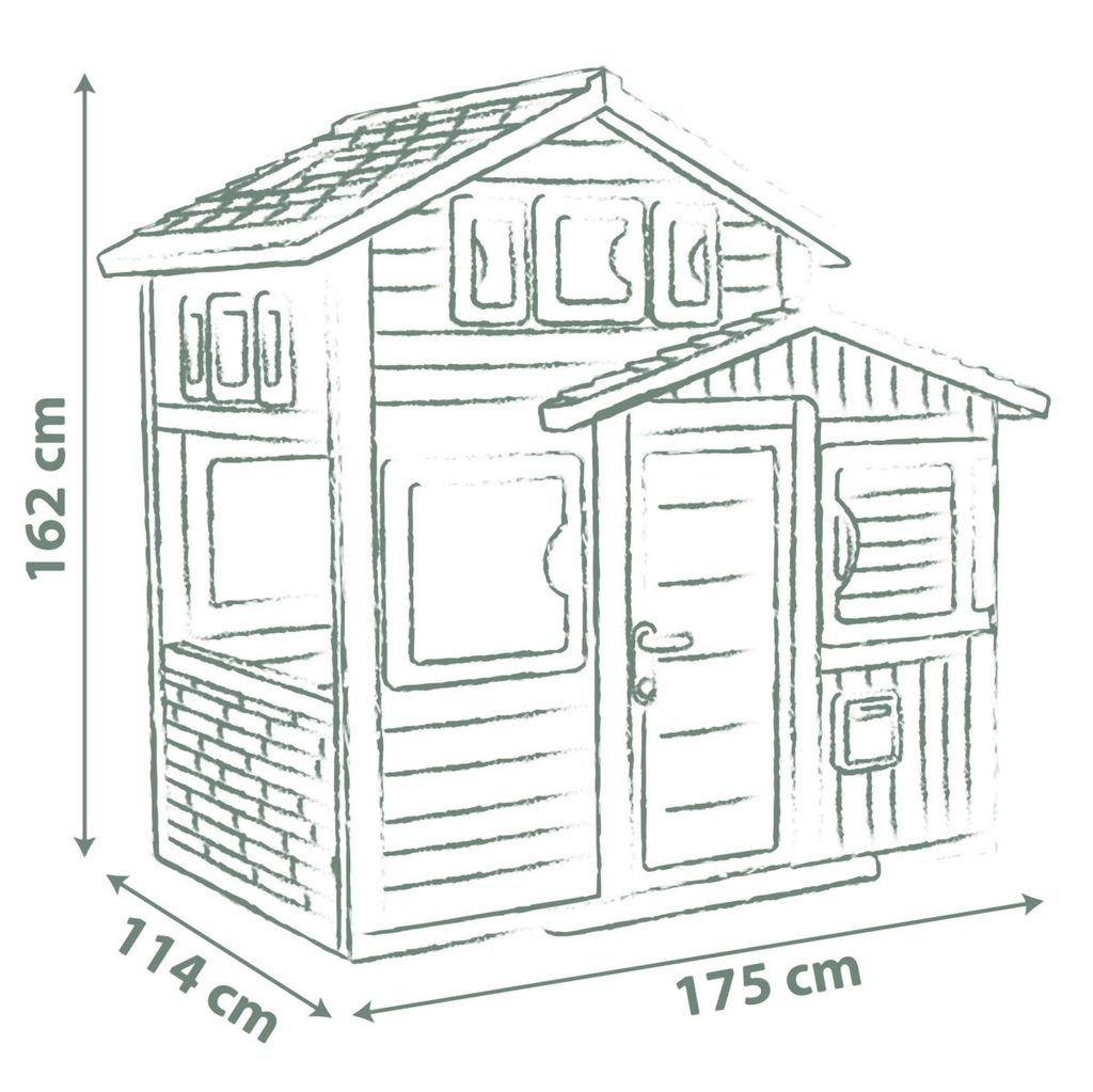 Prostorný zahradní domeček s výškou 1,62 m má přední plné dveře s kukátkem a zadní poloviční (sloužící jako tajný průchod), 6 oken, 2 okenice otočné o 360° a funkční poštovní schránku. Domeček lze rozšířit o další příslušenství. Tento výrobek obsahuje minimálně 61 % recyklovaného materiálu a je 100 % recyklovatelný. Plastové díly jsou ošetřeny proti UV záření pro dobrou odolnost a delší trvanlivost barev v průběhu času. Tento dům byl navržen tak, aby vyhovoval všem doplňkům Smoby, jako je letní kuchyně, piknikový stůl, sběrač vody, dobíjecí lampa nebo zvonek. Rozměry domečku (DXŠXV): 175 x 115 x 162 cm. Prostorný zahradní domeček s výškou 1,62 m má přední plné dveře s kukátkem a zadní poloviční (sloužící jako tajný průchod), 6 oken, 2 okenice otočné o 360° a funkční poštovní schránku. Domeček lze rozšířit o další příslušenství. Tento výrobek obsahuje minimálně 61 % recyklovaného materiálu a je 100 % recyklovatelný. Plastové díly jsou ošetřeny proti UV záření pro dobrou odolnost a delší trvanlivost barev v průběhu času. Tento dům byl navržen tak, aby vyhovoval všem doplňkům Smoby, jako je letní kuchyně, piknikový stůl, sběrač vody, dobíjecí lampa nebo zvonek. Rozměry domečku (DXŠXV): 175 x 115 x 162 cm.