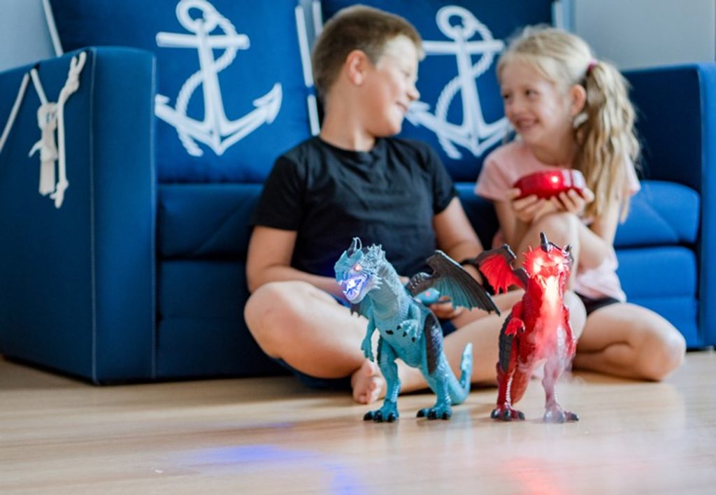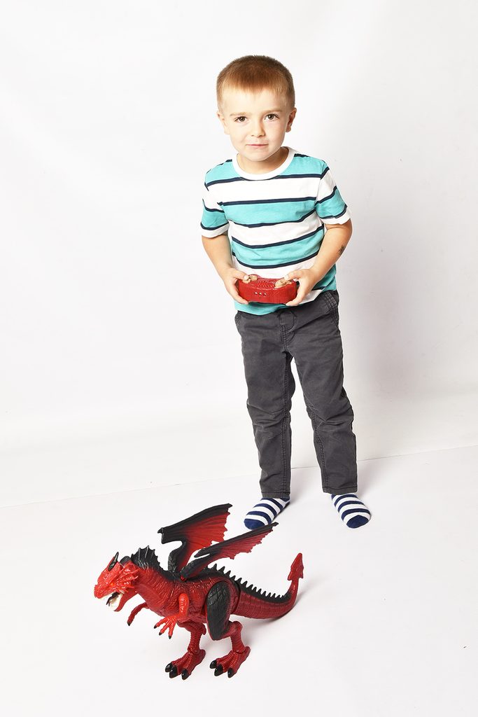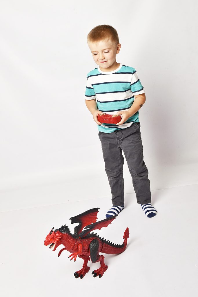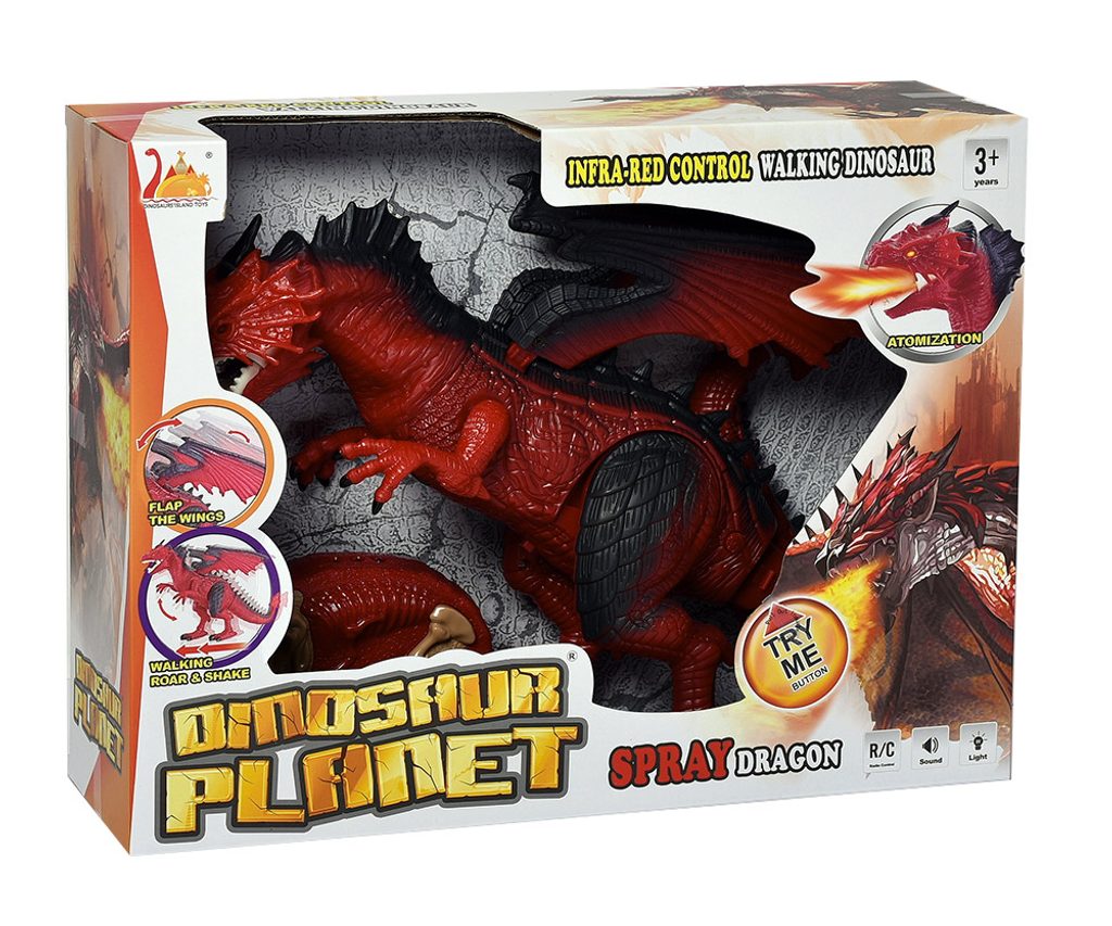 Dinosaurus, který chodí, hýbe se, vydává zvuk a chrlí páru. Na ovládání