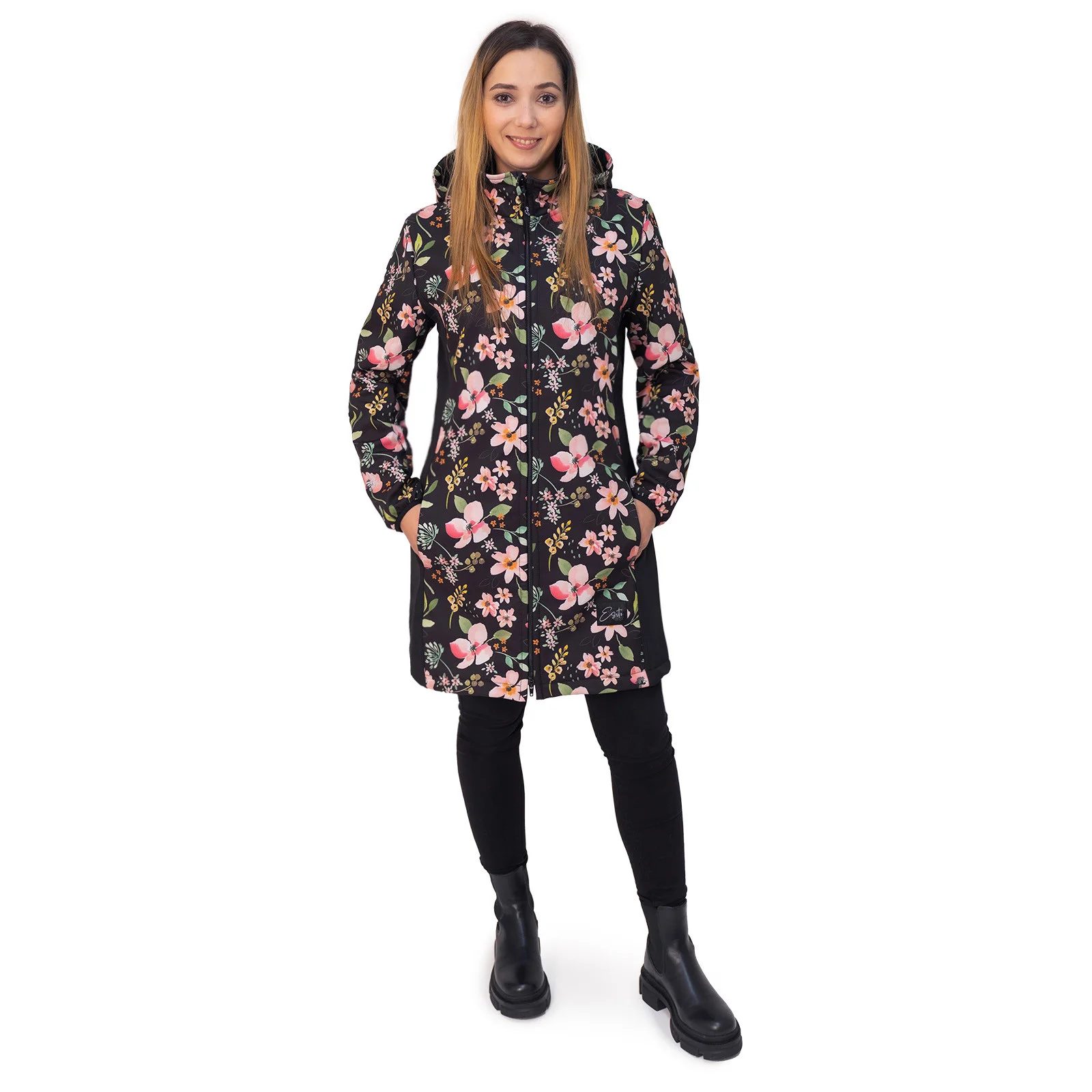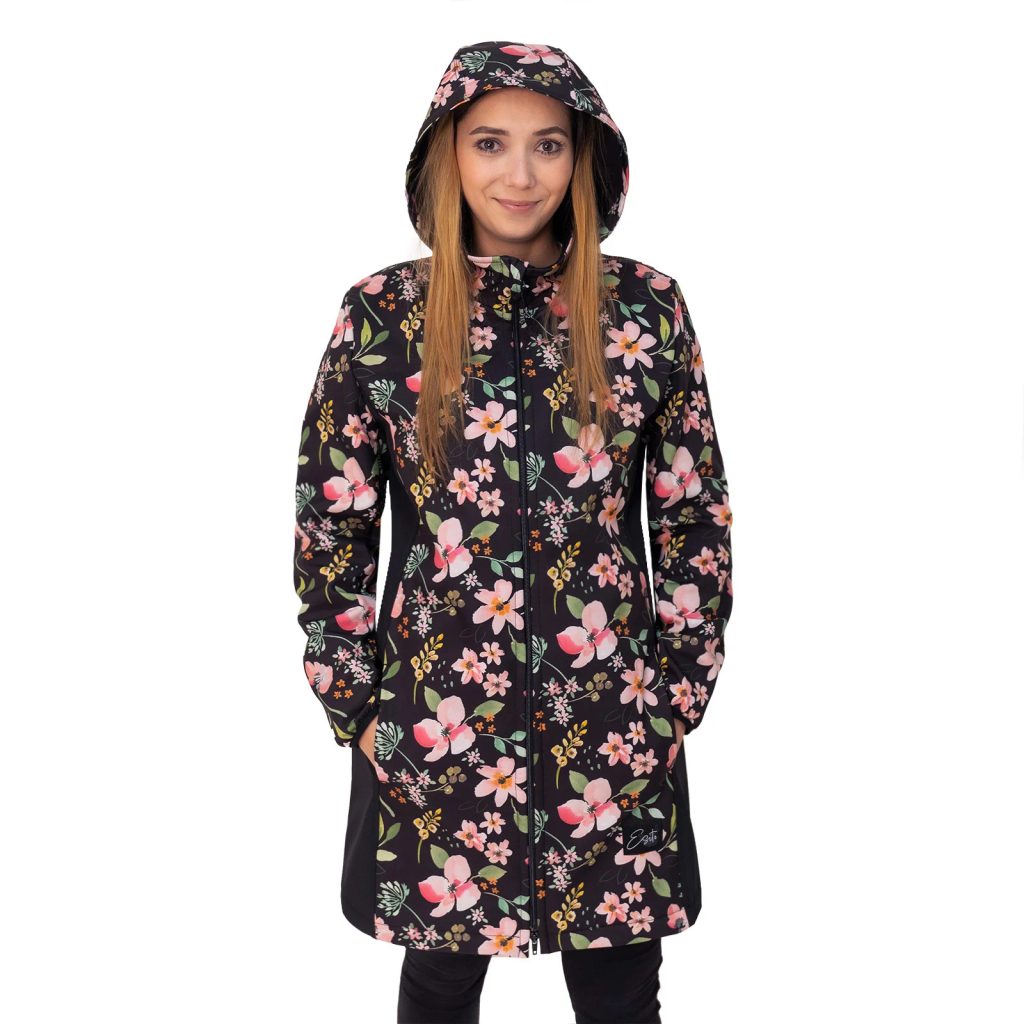 ESITO Dámský jarní softshellový kabát Spring flowers - černá