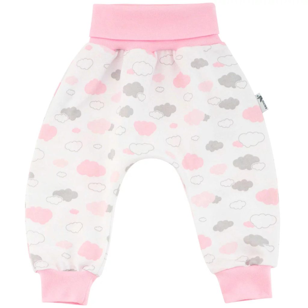 Popis:     Kojenecké tepláčky s potiskem "Mráček" v kombinaci barev růžová, modrá a šedá jsou ideální pro holčičky i chlapečky. Stylové dětské tepláky vhodné na jakoukoliv aktivitu. Moderní a pohodlný střih typu pudl, pudlo, parkour. Kojenecké tepláky jsou vyrobeny z kvalitní 100 % bavlny. V pase je pružný lem - super pohodlné nošení bez sebemenších otlačenin. Lem v pase jde vyhrnout do dvojnásobné výšky pro perfektní krytí spodní části zad. Nohavice jsou šité do manžety - perfektně a bezpečně drží na kotníku a nepadají z nožičky. Snadná údržba a perfektní vzhled. Materiál je běžné gramáže vhodný na jaro, léto a podzim, doma celoročně.   Velikosti:   - 50, 56, 62 a 68   - Velikostní tabulka.   Materiál:   - 100%  bavlna    Praní, sušení a žehlení:   - praní: ANO na 40°C   - aviváž: ANO   - sušení v sušičce: ANO za studena   - žehlení a ostatní: dle etikety na výrobku   Záruka kvality:   - výrobek je navržen, vyroben a zabalen na území Česka   - jedná se tedy o 100% český výrobek té nejvyšší kvality   - samozřejmostí je dvouletá záruka   - značkový výrobek ESITO®    Kvalitní český výrobek. Vyrobeno s péčí a láskou k dětem v podhůří Orlických hor.