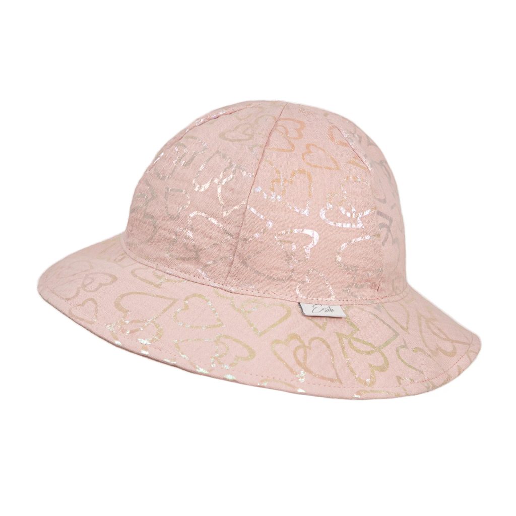Popis:     Dívčí klobouk mušelín Shiny heart. Lehký, letní dětský klobouk z příjemného měkoučkého mušelínu. Skvělý střih dívčího klobouku. Letní klobouk, který skvěle padne! Klobouček ideální na horké dny, tenký a přitom pevný materiál.   Materiál:    - 100 % bavlněný mušelín   Velikosti:   - vel. XXS - obvod klobouku 46 cm - se šnůrkami na zavázání   - vel.   XS - obvod klobouku 48 cm - se šnůrkami na zavázání   - vel.     S - obvod klobouku 50 cm - se šnůrkami na zavázání   - vel.    M - obvod klobouku 52 cm   - vel.     L - obvod klobouku 54 cm   - vel.   XL - obvod klobouku 56 cm    Bezpečnost:   - Certifikace: Oeko-Tex Standard 100.   - Značkový výrobek ESITO®.   Údržba:   - Před prvním použitím výrobek vyperte.   - Přirozená srážlivost - POZOR po prvním vyprání se bavlna lehce srazí.    - Praní: ANO na 40°C.   - Sušička: ANO, ideálně s programem za studena.   - Žehlení: NE, není třeba žehlit.   - Ostatní: viz. etiketa na výrobku.   Kvalitní české dětské oblečení. Vyrobeno s péčí a láskou k dětem v podhůří Orlických hor.