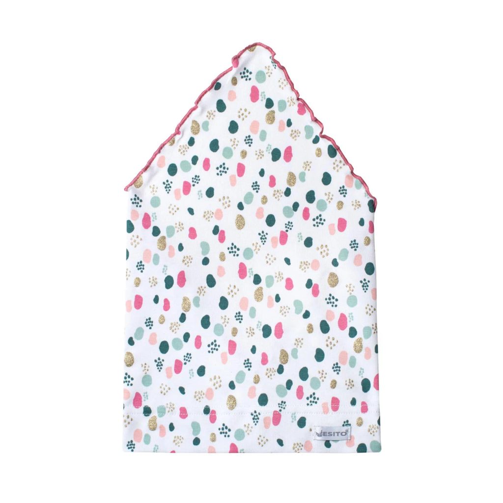 Výhody:   - moderní snadno udržovatelný materiál dětského šátku na hlavu se vzorem Třpytka   - velmi příjemný materiál na nošení, pohodlné navlékání i svlékání   - jednoduchý střih dívčího šátku na hlavu, který velmi dobře sedí   - vysoce kvalitní digitální potisk zářivými neonovými barvami   - krásně pružný materiál    Použití:   - jaro, léto, podzim    Určení:   - pro holky od cca 3 měsíců do cca 7 let viz. velikosti   - JARO, LÉTO, PODZIM    Materiál:    - 95 % bavlna, 5 % elastan    Velikosti:   - vel. 36 - obvod hlavy od 36 do 38 cm   - vel. 38 - obvod hlavy od 38 do 40 cm   - vel. 40 - obvod hlavy od 40 do 42 cm   - vel. 42 - obvod hlavy od 42 do 44 cm   - vel. 44 - obvod hlavy od 44 do cca 50 cm   - velikost udává obvod hlavy v cm    Bezpečnost:   - atestované materiály pro malé děti   - bez šňůrek na zavazování    Údržba:   - praní v pračce při teplotě do 40°C   - viz. etiketa na výrobku     Záruka kvality:  - výrobek je navržen, vyroben a zabalen na území Česka  - jedná se tedy o 100% český výrobek té nejvyšší kvality  - samozřejmostí je dvouletá záruka  - značkový výrobek ESITO®    Kvalitní český výrobek. Vyrobeno s péčí a láskou k dětem v podhůří Orlických hor. Rodinná firma ESITO je 100% český výrobce s vlastním vývojem a stylem. Její prioritou je nejvyšší možná kvalita, funkčnost, praktičnost a zároveň dobrá cena.