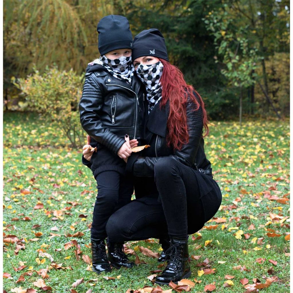 Proč multifunkční antibakteriální nákrčník od ESITO? Protože v sobě snoubí zakrytí úst a nosu a zároveň kryje krční partie, tak jako klasický nákrčník. Protože je pohodlný a pružný. Velmi dobře se navléká i svléká. V zadní části má druky, takže maminkám nehrozí rozcuchání a děti nemusí mít nervy na přetahování přes hlavičku. Ale lze i rychle přetáhnout přes hlavu a je hotovo. Nákrčník perfektně sedí viz. fotografie. Vrchní část nákrčníku snadno podhrnete pod spodní díl a máte hned jen klasický nákrčník. Horní část oceníte v dnešní době, ale také je skvělý pro lyžaře, bruslaře, sáňkaře a další nejen zimní sporty. Výborně prodyšný materiál, přes který se výborně dýchá. Perfektní vzhled docílíte s čepicí stejného vzoru, kterou si lze dokoupit. Poté máte dokonalý outfit do sychravého počasí. Gumičky v horní části nákrčníku jsou velmi pohodlné, měkké a extra pružné. Navíc si je nastavíte při prvním nasazení tak, aby vše ideálně sedělo. K dispozici jsou dvě velikosti, tu která bude patřit Vám určíte podle velikostní tabulky. Nákrčník vel. 1 je určen dětem od cca 3 až 4 let až po dospělé s běžným obvodem krku. Ano čtete správně :) Nákrčník vel. 2 pro dospěláky a nebo teenagery s větším obvodem okolo krku. Což si snadno změříte. Pro porovnání: holčička spolu s maminkou na fotografiích v galerii mají obě vel. č. 1. Dokonale proprtacovaný střih, který skvěle sedí všem konfekčním velikostem. Jako velký bonus jsou ionty stříbra obsažené ve vnitřní části nákrčníku. Výborné řešení pro alergiky, astmatiky ap.