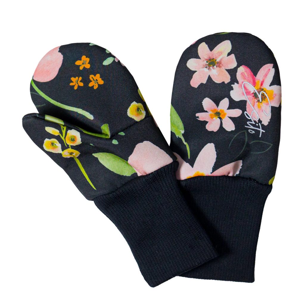 ESITO Palcové rukavice softshell Spring flowers - černá