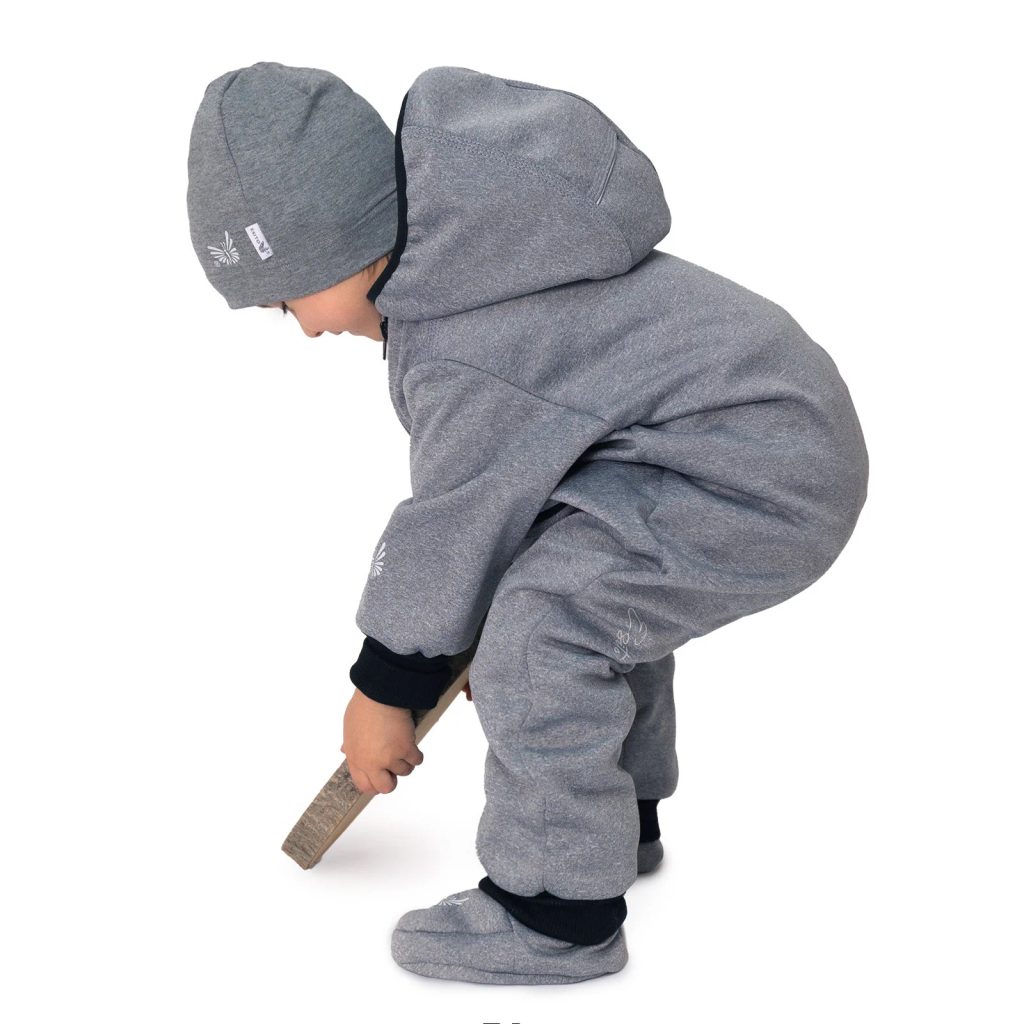 Popis: Rostoucí softshellová kombinéza s fleecem Šedý melír. Nepromokavý a přitom prodyšný softshell s fleecem v té nejvyšší kvalitě ideální i pro malé lezce a milovníky kaluží a bláta. Maximální bezpečí zajistí 5 skutečných reflexních prvků při snížené viditelnosti doslova svítí, na hrudi, nohavici, na rukávech a na kapuci prostě ze všech stran. Kapuce s "kšiltem" je podšita bavlnou. Volný střih overalu pro volný pohyb při objevování světa. Pružný a dlouhý lem podrží délku rukávů i nohavic a navíc prodlouží velikost. Dva dlouhé zipy zajistí snadné a rychlé oblékání i přebalování. Navíc kluci co již nemají plenky vykonají potřebu rychlostí blesku. Navíc poutko na bezproblémové zavěšení i na široký věšák a také kompletní krytí zipů. Určení: Určeno na období: chladnější jaro, podzim a teplejší dny zimy. Materiál: - Parametry vodní sloupec 10.000 mm/ propustnost 3.000 g/m2/24h. - Složení softshellu: 95% polyester + 5% elastan s funkční membránou a fleecem. - Náplety: bavlna: 96 % bavlna 4 % elastan. Velikosti: Rostoucí dvouvelikostní kombinéza. - 56 - 62 - 62 - 68 - 68 - 74 - 74 - 80 - 80 - 86 - 86 - 92 - 92 - 98 Bezpečnost: - Atestované materiály. Öko-Tex třídy 1 - pro děti do 3 let - Reflexní prvky umístěné na předním díle, zádech, rukávech a kapuci. Výhody: - Moderní, funkční a velmi snadno udržovatelný materiál. - Overal je možné kombinovat s capáčky a také čepicí, doporučujeme! - Originální 100% český výrobek, 100% hand made. Údržba: - Před prvním použitím výrobek vyperte. - Praní v pračce při teplotě do 30°C. - Použití sušičky pouze s programem za studena jinak může dojít k oddělení TPU membrány. - Pro zachování funkčních vlastností materiálu Softshell je třeba používat prací prostředky na funkční materiály s membránou a zásadně nepoužívat žádnou aviváž. Kvalitní český výrobek. Vyrobeno s láskou k dětem v podhůří Orlických hor.