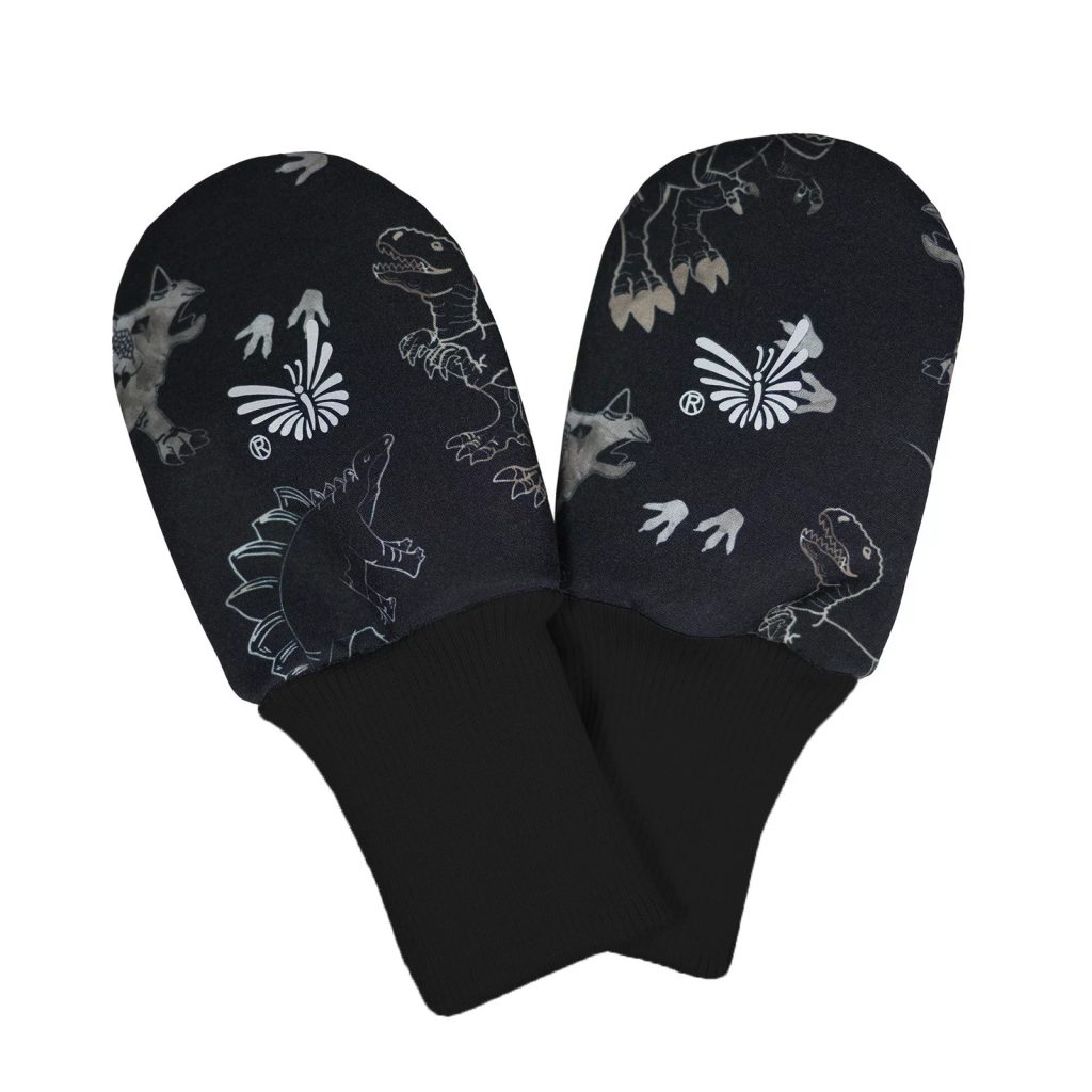 Popis: Jednoduché bezpalcové dětské podzimní rukavice, třívrstvý softshell uvnitř zateplený fleecem. Pro miminka do města i na hory. Rukavice účinně chrání před větrem i deštěm. Ušpiněné rukavice snadno vyčistíte navlhčeným hadříkem pouhým otřením.       Materiál:   Svrchní: Softshell s digitálním potiskem vyrobený v Evropě.                   - vodní sloupec 20.000 mm/m2/24h                   - propustnost vodních par směrem ven 5.000 g/m2/24h                   - složení softshellu: 95% polyester 5% elastan TPU zátěrem, fleecem.    Softshell má vynikající termoizolační vlastnosti, je to funkční třívrstvý materiál, který dobře odvádí pot a zahřeje dle potřeby.   Vysoký pružný náplet okolo ručiček složení: 96 % bavlna 4 % elastan.     Velikostní tabulka podzimních dětských sofshellových rukavic: věk (orientační) délka od zápěstí k prstům celková délka rukavice 6 - 12 měsíců 11 cm 18 cm     Určení: - Pro děti od cca 6 do 18 měsíců. - Využijete od městské aglomerace až po vysokohorské oblasti.     Údržba: - Praní: ANO, do 30°C. - Pro zachování funkčních vlastností materiálu Softshell je nutné používat prací prostředky na funkční materiály s membránou. Nepoužívat žádnou aviváž, nežehlit, chemicky nečistit, použití sušičky je dovoleno pouze s programem za studena, jinak může dojít k oddělení TPU (funkční) membrány. - Žehlení: NE.    Kvalitní 100% český hand made výrobek od ESITO. Vyrobeno s láskou k dětem v podhůří Orlických hor.