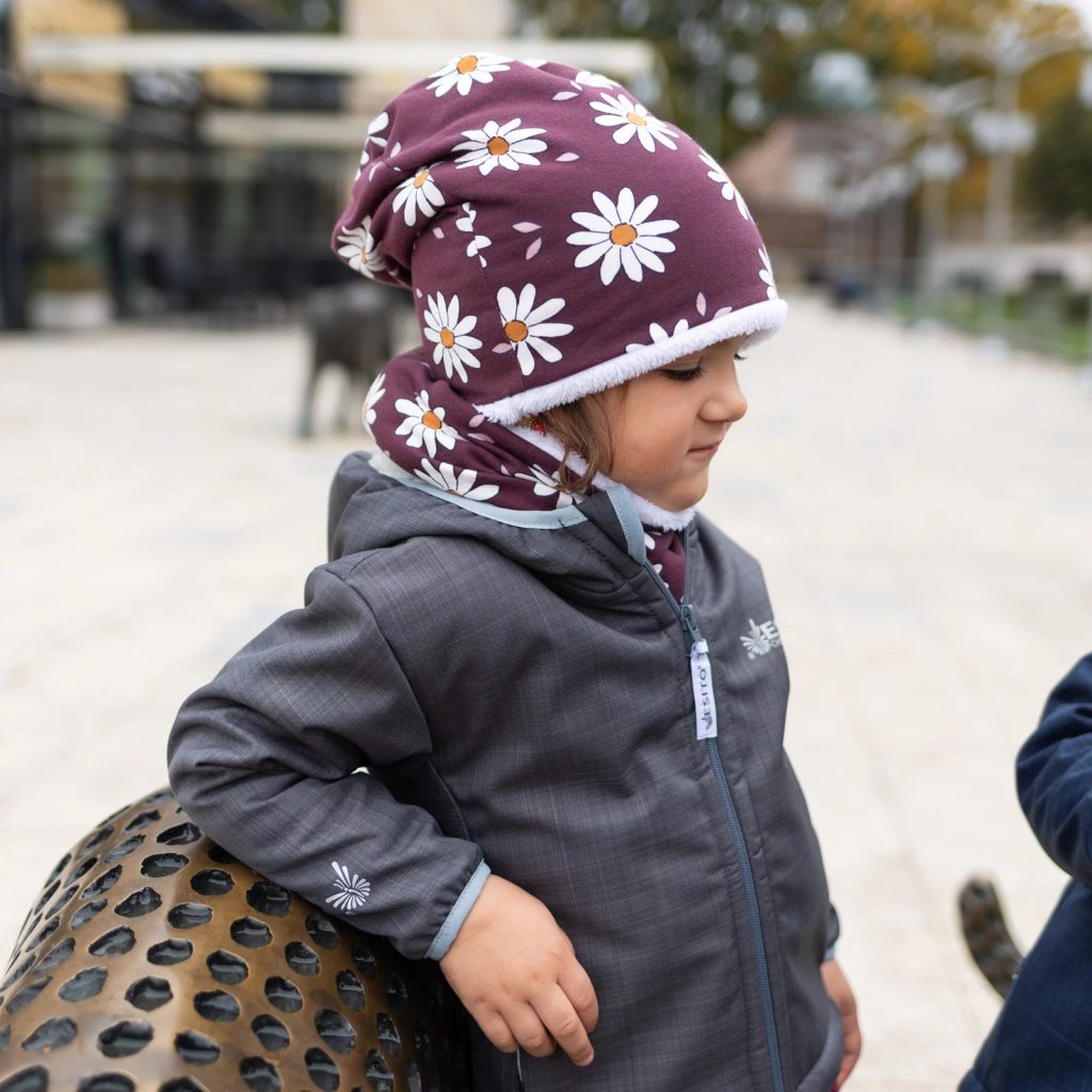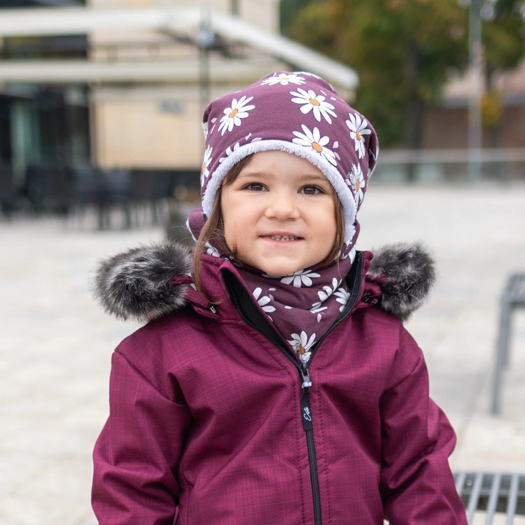 Použití: Spadená teplá zimní čepice Daisy vhodná pro malé princezny i jejich maminky. Vrchní část čepice je vyrobena z pružné BIO teplákoviny 95% bavlna + 5% elastanu podkladová barva vínová, která je opatřena velmi kvalitním digitálním potiskem. Vnitřní část prodloužené čepice je zateplena chlupem Magna v bílé barvě.  Střih prodloužené zimní čepice je delší a patří do kategorie spadených zimních čepic tzv. houmeles. K čepici lze dokoupit zimní nákrčník ve stejném provedení.    Materiál:  - vnější: 95% bavlna  + 5% elastan  - vnitřní: 100% PES - polar fleece    Velikosti:   - vel. 40 - obvod hlavy od 40 až 43 cm   - vel. 42 - obvod hlavy od 43 až 45 cm   - vel. 44 - obvod hlavy od 45 až 47 cm   - vel. 46 - obvod hlavy od 47 až 49 cm   - vel. 48 - obvod hlavy od 49 až 51 cm   - vel. 50 - obvod hlavy od 51 až 54 cm     - Velikost hlavy je zejména u menších dětí velmi individuální a nelze se proto řídit věkem. Určující pro výběr dětské zimní čepice je obvod hlavy.     Bezpečnost:   - atestované materiály pro malé děti Oeko-Tex Standard 100    Údržba:   - Praní: ANO, do 40°C.   - Žehlení: NE.   - Ostatní viz. etiketa na výrobku.   Záruka kvality:  - Dětská čepice je navržena, vyrobena a zabalena na území Česka.  - Precizně ručně šitý 100% český výrobek té nejvyšší kvality.  - Značkové handmade české dětské oblečení od ESITO®.    Kvalitní český výrobek. Vyrobeno s péčí a láskou k dětem v podhůří Orlických hor.