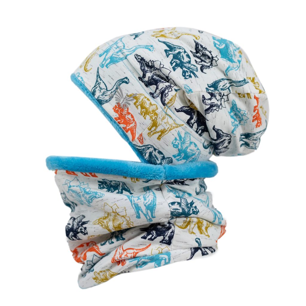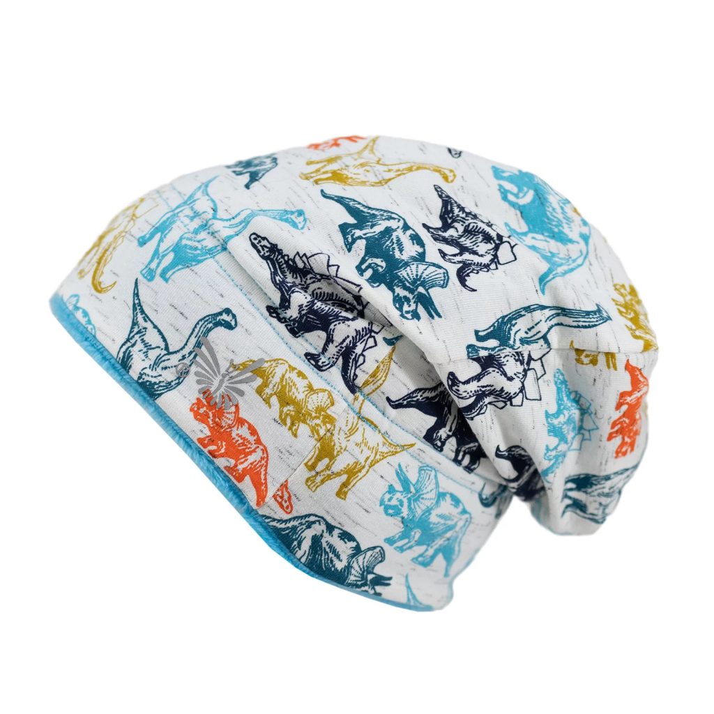 ESITO Zimní čepice spadená Dinouši - tyrkysová