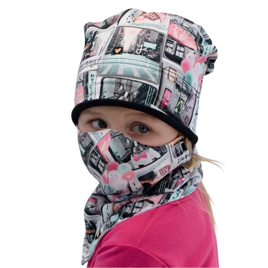 - skvělý střih dětské zimní čepice zaručující dokonalé zakrytí čela, šíje i uší