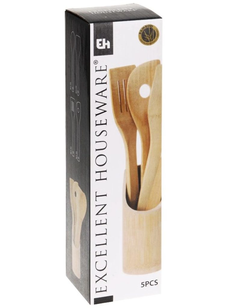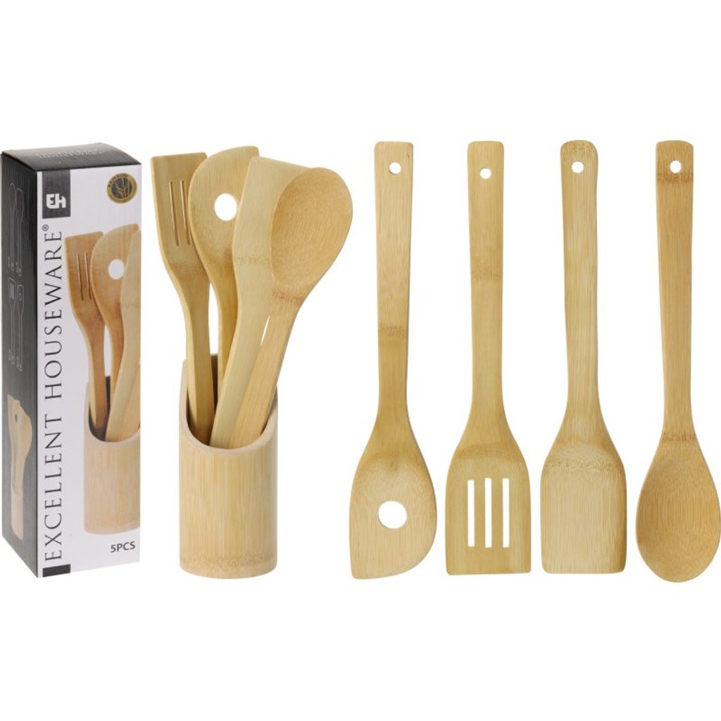 EXCELLENT HOUSEWARE Kuchyňské náčiní ve stojanu sada 5 ks bambus KO-784610060