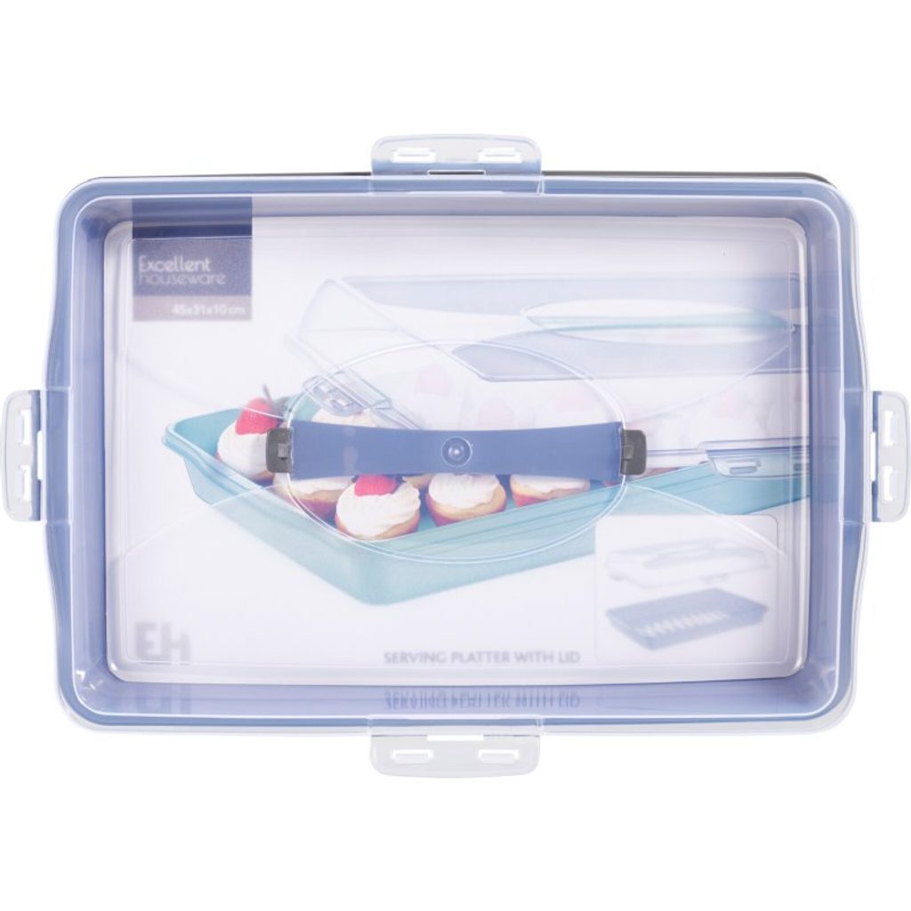 Elegantní a praktický servírovací tác s průhledným víkem je ideální pro přenášení a uchovávání dortů, zákusků nebo jiných pochoutek. Vyrobený z kvalitního plastu (PP), je lehký, snadno omyvatelný a bezpečný pro styk s potravinami – neobsahuje BPA.