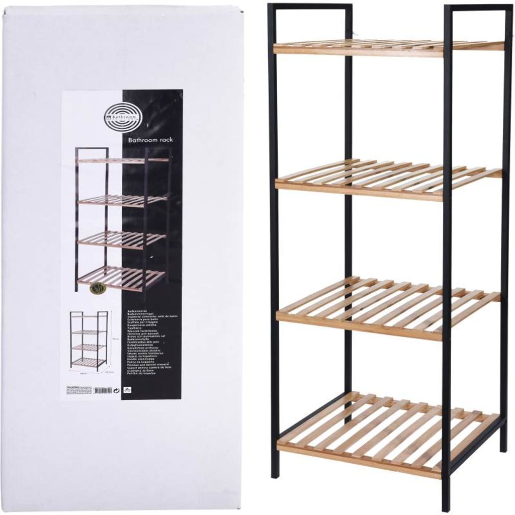 EXCELLENT HOUSEWARE Regál do koupelny 4 police dřevěný 95 cm KO-784630070 - úložný policový regál nejen do koupelny- ocelová konstrukce v matné černé barvě- ochranný nástřik prodlužuje životnost, brání proti korozi- žebrované police z přírodního bambusového dřeva- regál obsahuje celkem 4 stejně velké dřevěné police- užitečný pro skladování prakticky čehokoli- regál najde využití kdekoli v domácnosti, především v koupelně- snadné přemisťování díky lehké váze- rozměry celkové: 38 x 33 x 95 cm- rozměry jedné police: 35 x 33 cm