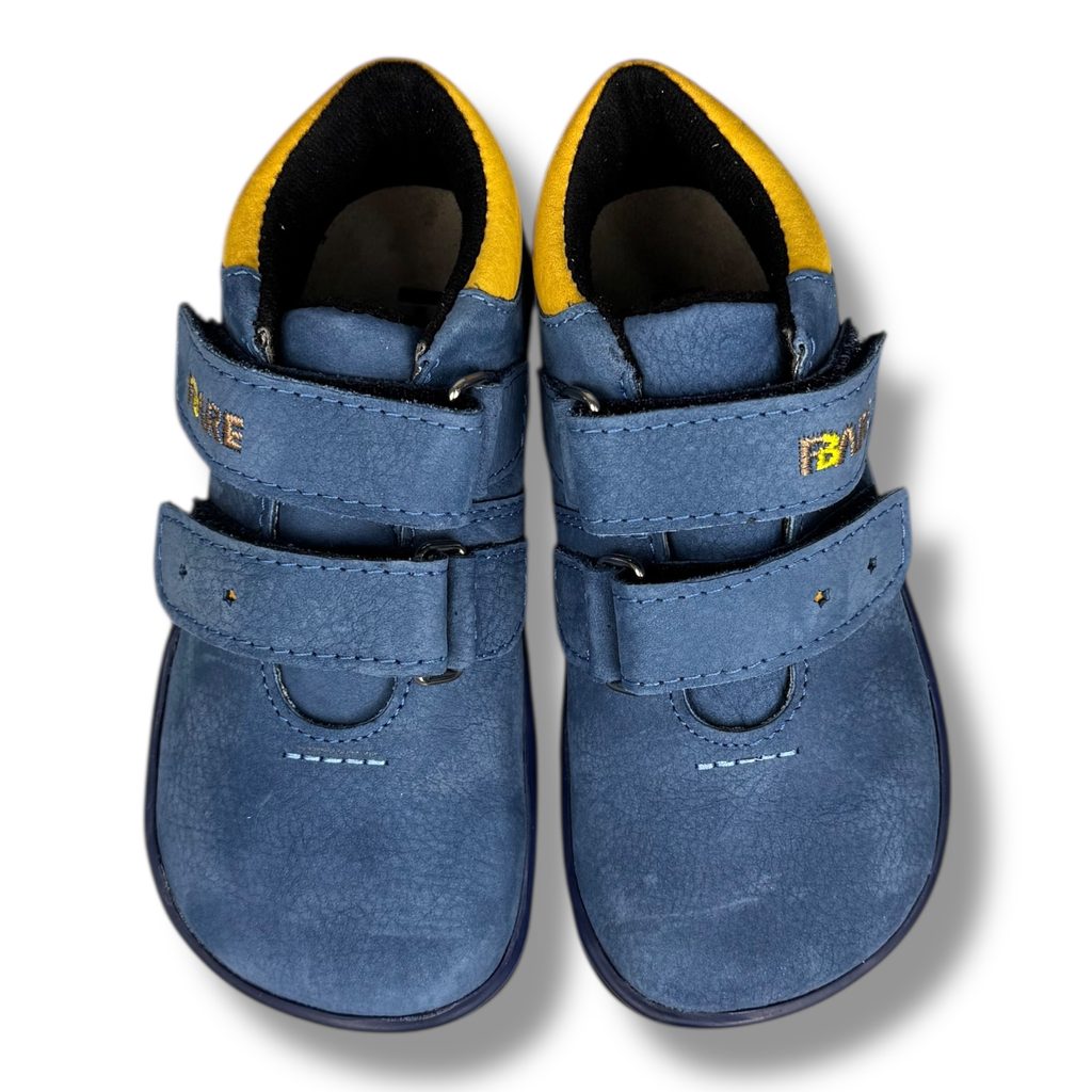 FARE BARE B5426201 – dětské barefoot kotníkové boty z nubukové kůže s membránou, modré