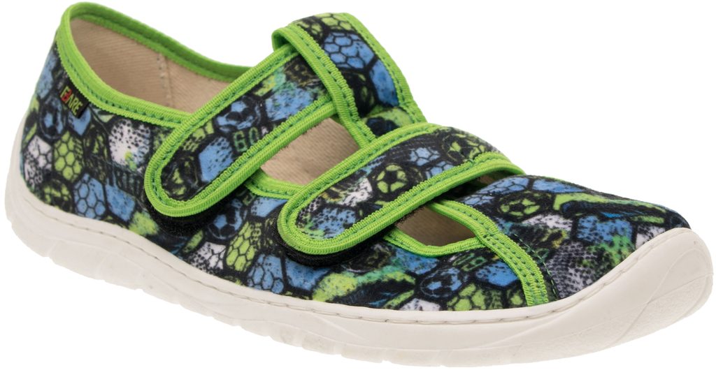 Dětská domácí barefoot obuv na 2 suché zipy. Obuv je ohebná nejen příčně, ale i podélně.