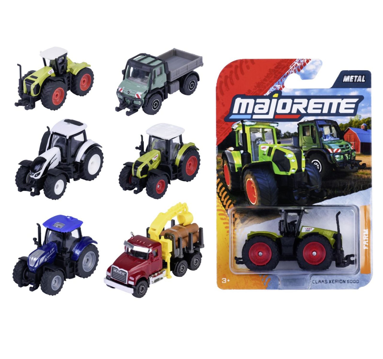 Kovové farmářské vozidlo, traktor na volnoběh, kovové, pohyblivé a/nebo otevírací díly. Délka 7,5 cm. 6 druhů.