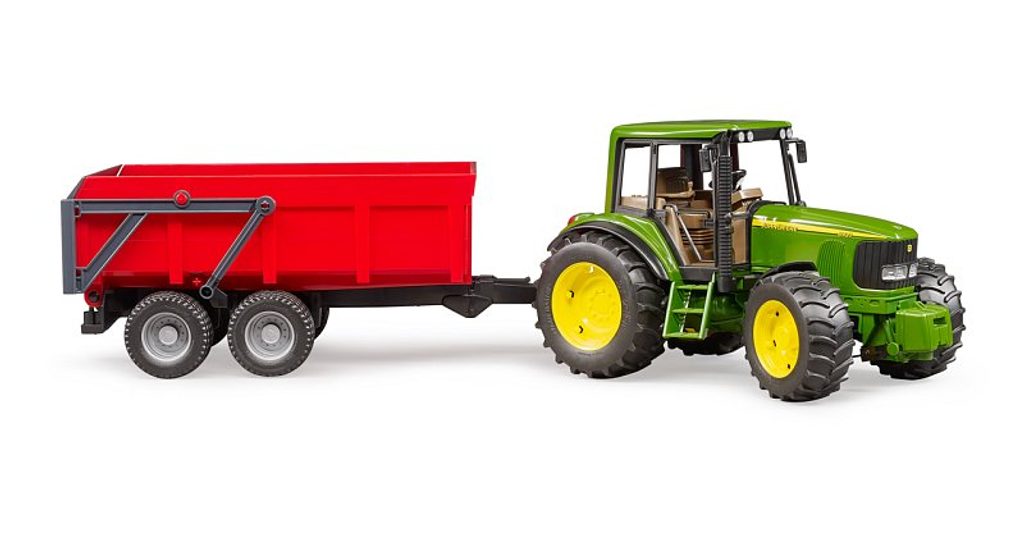 John Deere 6920 je výkonný a spolehlivý zemědělský nástroj. Kapota motoru se dá otevřít a odhalíte tak blok motoru. Terénní přední náprava může být řízena buď přímo prostřednictvím pohyblivého volantu v kabině nebo prodloužením volantu, které mohou děti připojit k pohyblivému volantu přes posuvnou střechu v kabině. Korba přívěsu se sklopí a zadní víko se automaticky otevře. Připojte táhlo a použijte nástroj pro vypouštění zrn. Obsahuje: 1 x traktor s vlekem. Měřítko: 1:16. Vyrobeno z vysoce kvalitních plastů. Věk: 3+