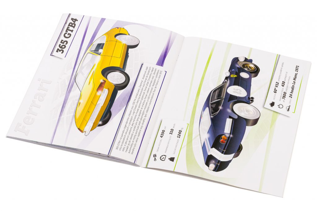 Objevujte dokonalé tvary nejkrásnějších silničních automobilů proslulé značky Ferrari a užijte si spoustu zábavy s doplňováním atraktivních modelů samolepkami. Kromě zábavy vás čeká i řada zajímavých informací o těchto úžasných nablýskaných strojích a jejich technických parametrech.