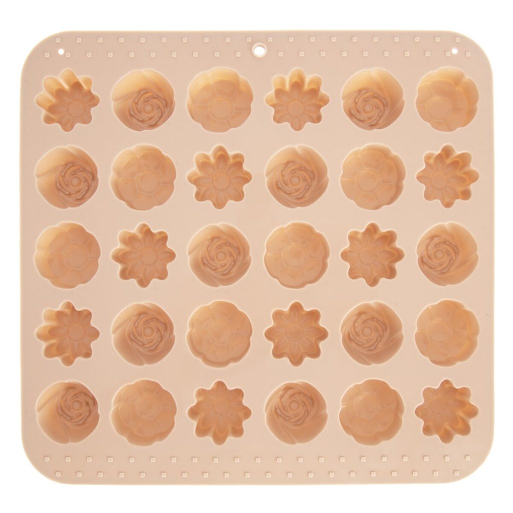 Silikonová forma Vám vytvoří krásné květy z bílé nebo tmavé čokolády. Můžete v ní ale stejně dobře tyto tvary upéci z těsta. Materiál: silikon. 30 květů. Snáší vysoké teploty (od -40 °C do +230 °C), nepřejímá chutě ani vůně z použitých potravin. Rozměry: 21x20,5x1,5 cm, květ pr. cca 2,8 cm. Vhodná do myčky na nádobí, mrazáku, trouby a MVT.