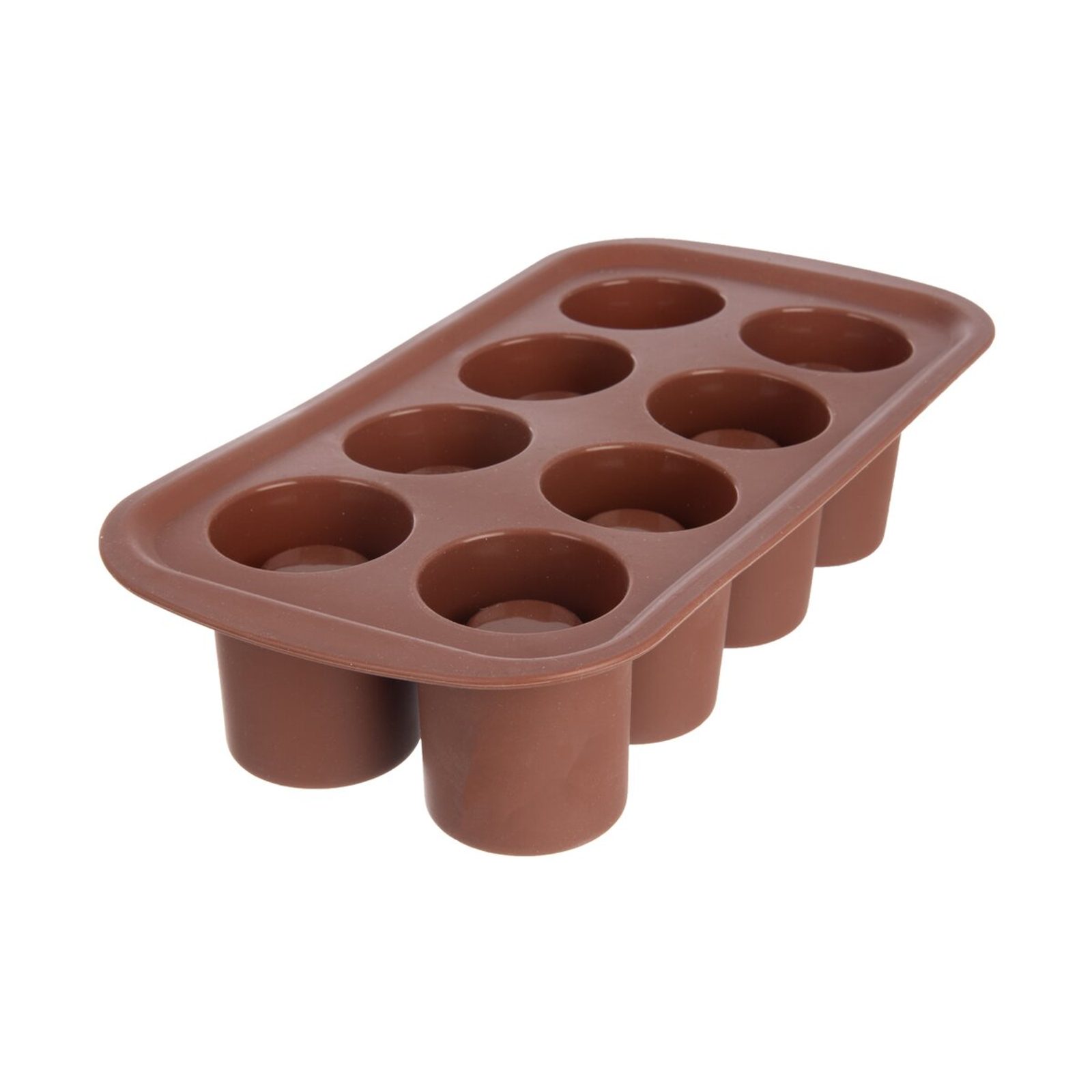 Silikonová forma je vhodná pro výrobu likérových špiček i pečení sladkých dobrot v originálním tvaru. Mezi možné dezerty patří například čokoládové – do formy stačí nalít rozpuštěnou čokoládu, nechat ji ztuhnout a poté naplnit šlehačkou nebo krémem. Lze ji využít i k vytvoření ledu, který poslouží jako originální ledová mini sklenička naplněná nápojem. Balení obsahuje 8 jednotlivých formiček. Forma snáší teploty od -40 °C do +200 °C, nepřejímá chutě ani vůně z použitých surovin. Je vhodná do myčky na nádobí, mikrovlnné trouby, chladničky, mrazničky i klasické trouby. Na obalu je uveden i recept. Materiál: silikon. Rozměry: 26,5x14x6 cm, pr. formičky 4,5 cm.