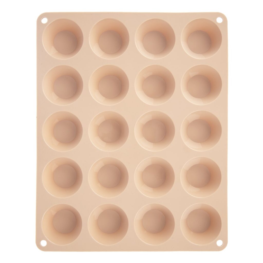 Silikonová forma na mini muffiny – 20 tvořítek. Je lehká a nepřilnavá, těsto se v ní nepřipéká, nepohlcuje pachy z potravin. Materiál: silikon - odolný vůči teplotám -40 °C až +220 °C. Vhodná do myčky na nádobí, mrazáku, trouby a MVT. Rozměry: 29x23,5x2 cm, pr. jedné formičky 3/5 cm.