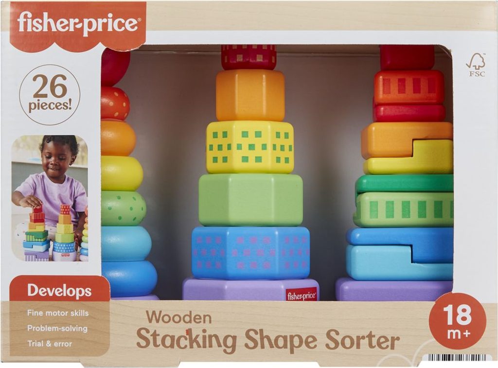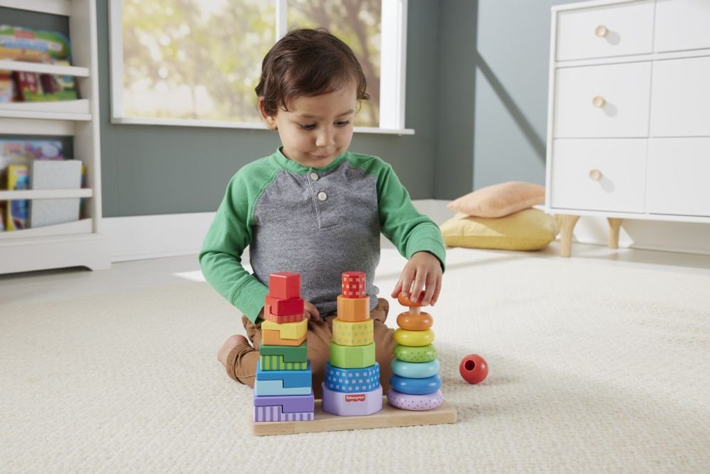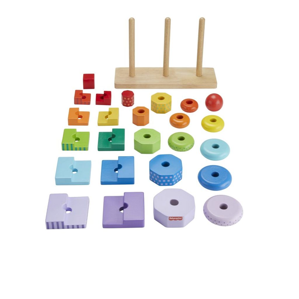 S dřevěným třídičem tvarů pro batolata od Fisher-Price® si užijete trojnásobnou zábavu. Tento set obsahuje snadno uchopitelné dřevěné kroužky, osmiúhelníky a dvoudílné geometrické obdélníky, které lze třídit a skládat na základnu. Tato skládací hračka pro děti předškolního věku je vyrobena ze dřeva z dobře obhospodařovaných lesů s certifikátem FSC®. (FSC C004225, 2021) S dřevěným třídičem tvarů pro batolata od Fisher-Price® si užijete trojnásobnou zábavu. Tento set obsahuje snadno uchopitelné dřevěné kroužky, osmiúhelníky a dvoudílné geometrické obdélníky, které lze třídit a skládat na základnu. Tato skládací hračka pro děti předškolního věku je vyrobena ze dřeva z dobře obhospodařovaných lesů s certifikátem FSC®. (FSC C004225, 2021)