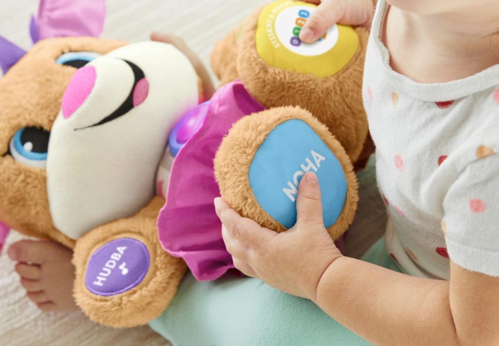Pejskova měkoučká mazlivá sestřička se postará o to, že učení bude vždy jedna velká legrace. Když se dítě svojí kamarádky dotkne, zareaguje pejskova sestřička tak, že hned spustí veselé písničky a fráze, které vaše maličké naučí víc než 100 základních slov, části těla, barvy, tvary a mnoho dalšího! Srdíčko pejskovy sestřičky dokonce barevně bliká do rytmu hudby! Protože se každé dítě vyvíjí různě rychle, podporuje hračka technologii Smart Stages,