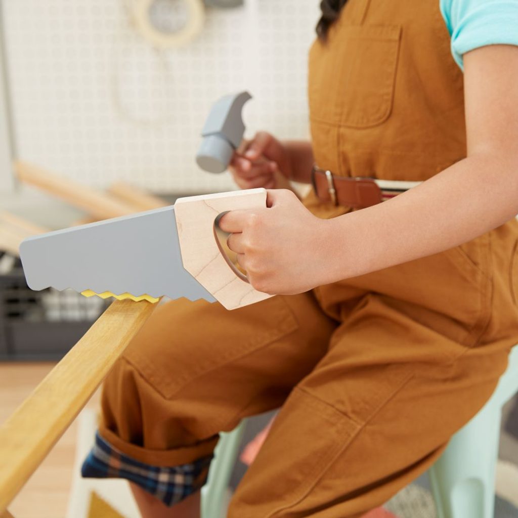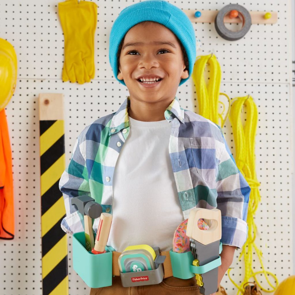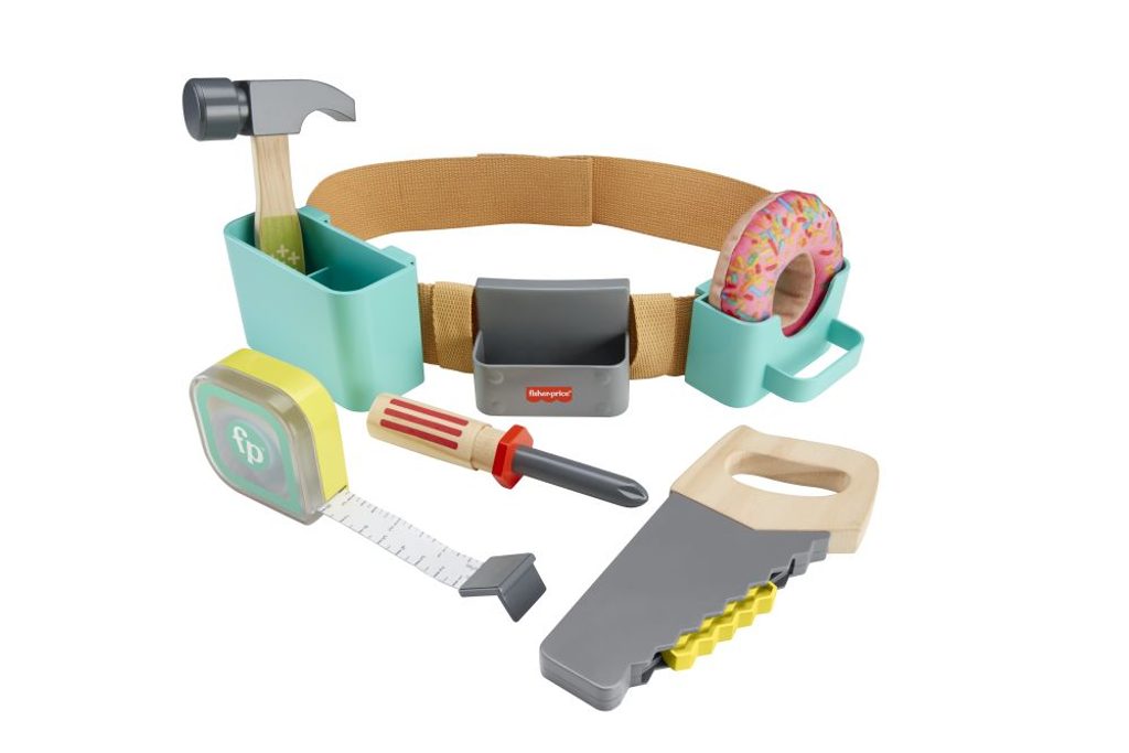 Váš malý opravář či opravářka si užije spoustu zábavy u opravování věcí kolem domu s Fisher-Price® Opaskem na nářadí. Látkový opasek má spoustu praktických přihrádek na nástroje jako kladívko, šroubováček, opravdický svinovací látkový metr a parádní pilku, která vydává při řezání zvuky. Navíc zde najdete také látkovou koblihu, kterou můžete vašeho malého stavitele či stavitelku odměnit po dobře vykonanou práci. Kdykoliv děláte něco v garáži nebo pracujete na vylepšení vašeho domu, váš malý asistent bude vždy připraven po vašem boku se spoustou šikovných nástrojů, aby vám pomohl.