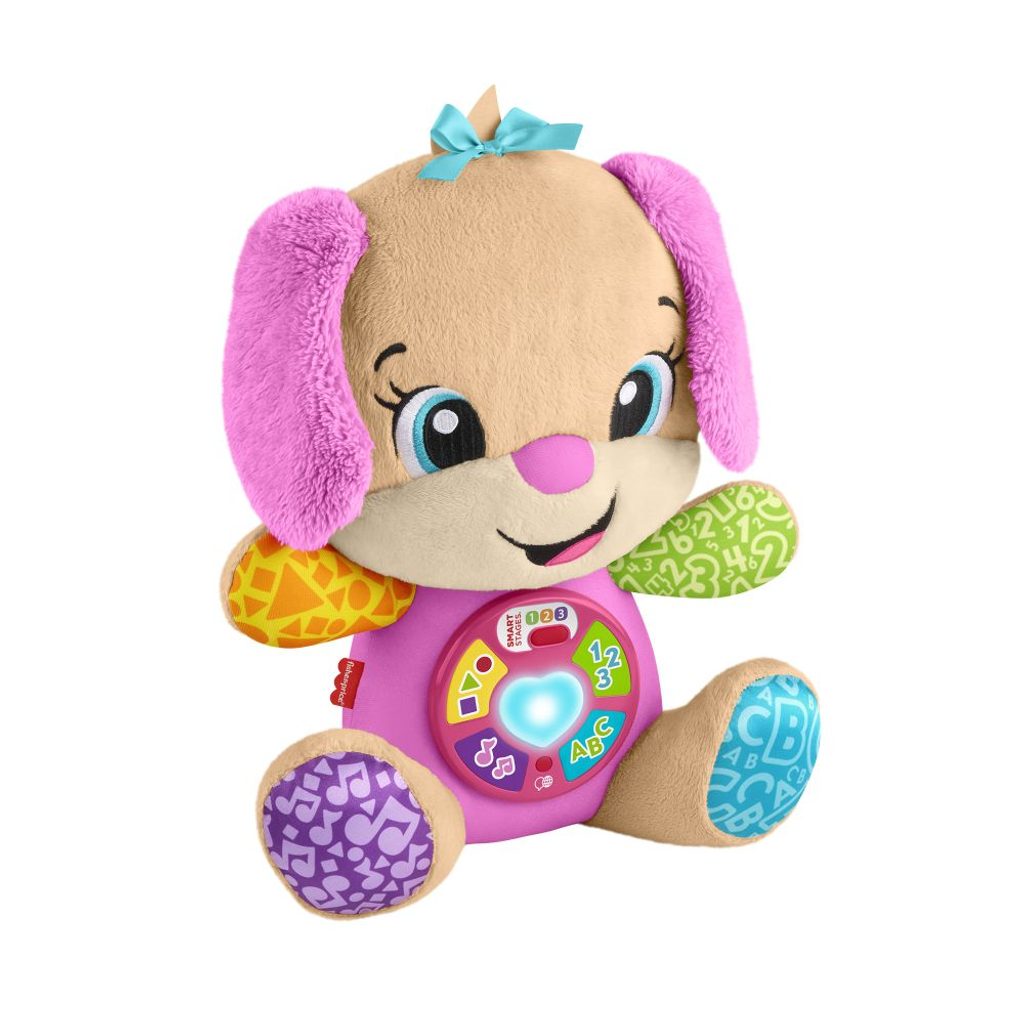 Mluvící pejskova sestřička Smart Stages® z řady Fisher-Price® Směj se a Poznávej!® je příjemná plyšová hudební hračka, která seznamuje dítě s abecedou, tvary, prvními slovy a dalšími prvky! Děti mohou stisknout 5 tlačítek na bříšku a sledovat, jak se její srdíčko rozsvěcuje barvami, zatímco hraje více než 80 písniček, zvuků a frází. Díky více než 12 originálním písničkám a 3 úrovním učení Smart Stages®, které rostou spolu s dítětem od kojence až po batole, se Mluvící pejskova sestřička stane nejlepší kamarádkou vašeho děťátka.