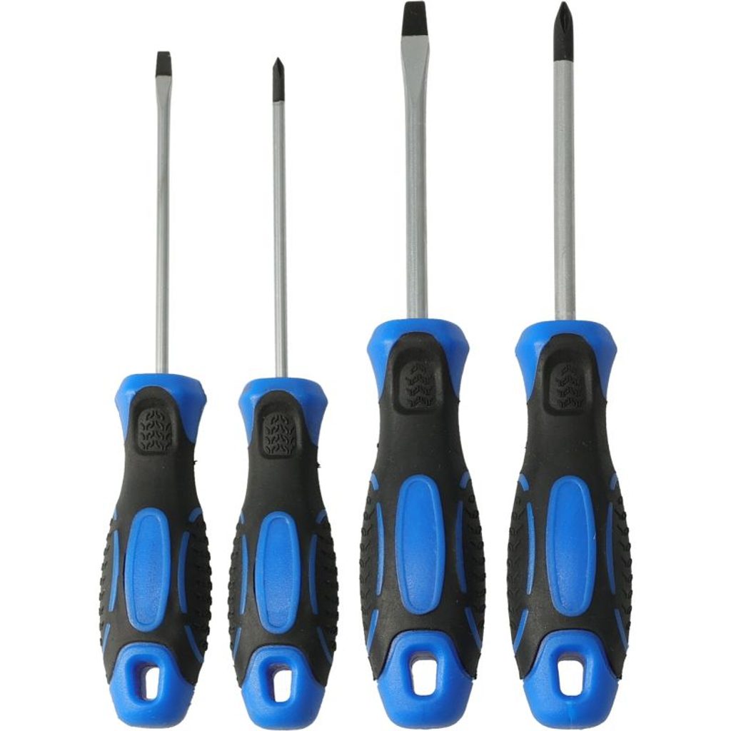 Praktická sada šroubováků s držákem, v modro-černém provedení, baleno v zásobníku s PP smrštovacím obalem.