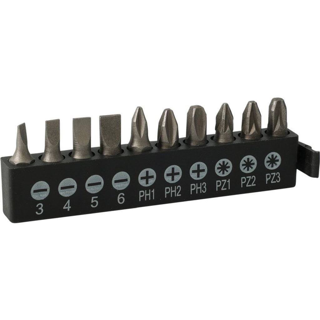 Přednosti: kompaktní a přehledná sada vhodná pro domácí i profesionální použití, praktický držák a magnetické bity zajišťují snadnou práci se šrouby.