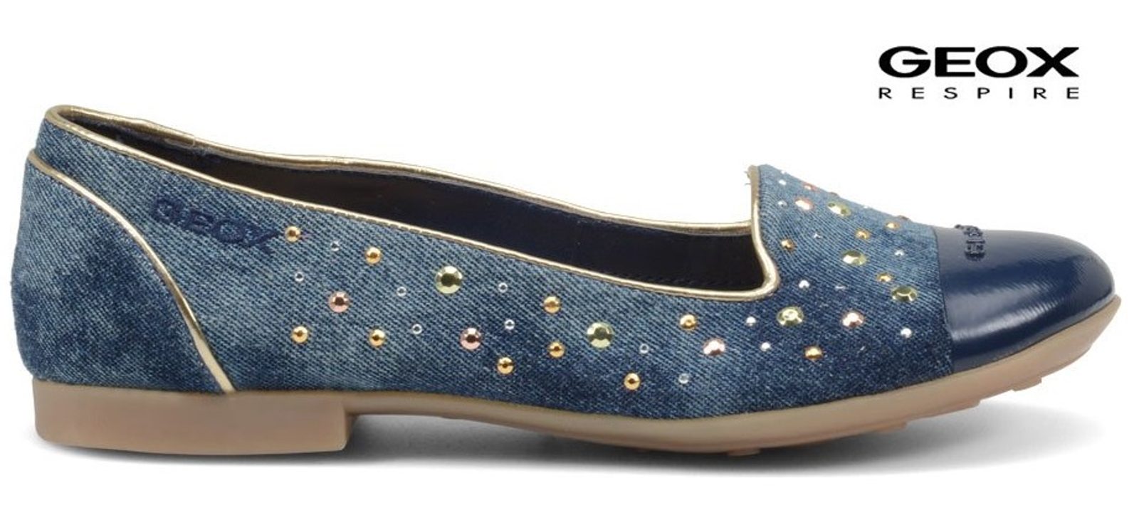 Celoroční módní vycházková obuv od osvědčeného italského výrobce GEOX. Barva Denim s kamínky.