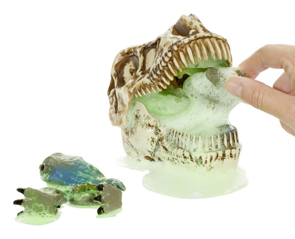 • kosti ke složení jednoho z osmi dinosaurů Kosti, pěna, sliz! Wow! Přidej do obrovské dinosauří lebky vodu a sleduj, jak jí začne pěnit u úst. Lebce musíš vypáčit čelist a vyhrabat doplňky a části dinosaura, ze kterých sestavíš menšího dinosaura. Po sestavení mu dej napít zeleného toxického slizu a sleduj, odkud poteče ven! 8 druhů.