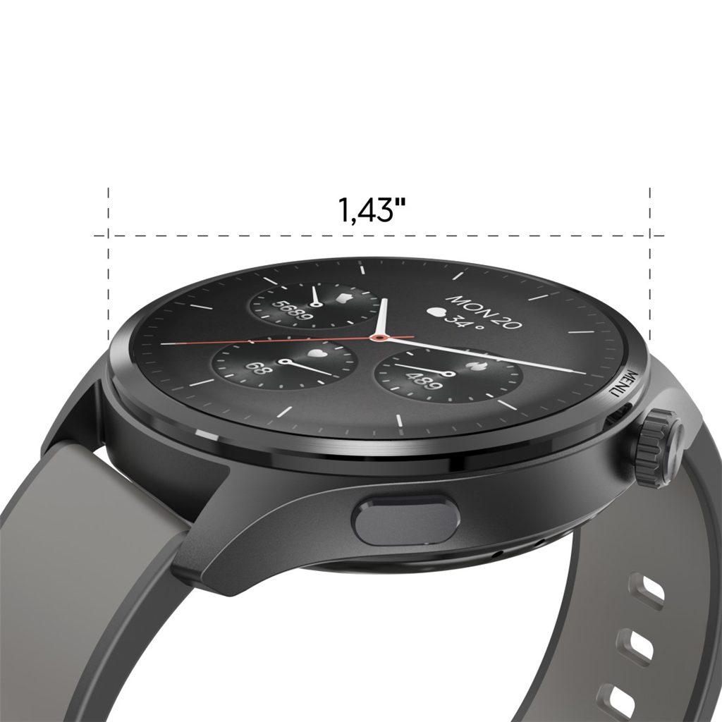 - plně dotykový, plnobarevný AMOLED displej 1,43"