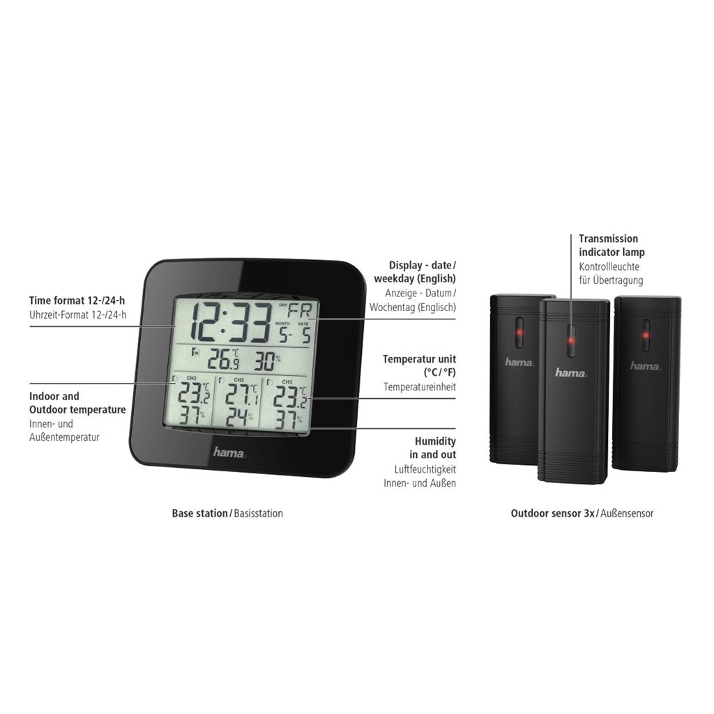 - obsah balení: 1x základna, 3x bezdrátový senzor, 3x AAA Micro, 6x AA Mignon, návod k použití