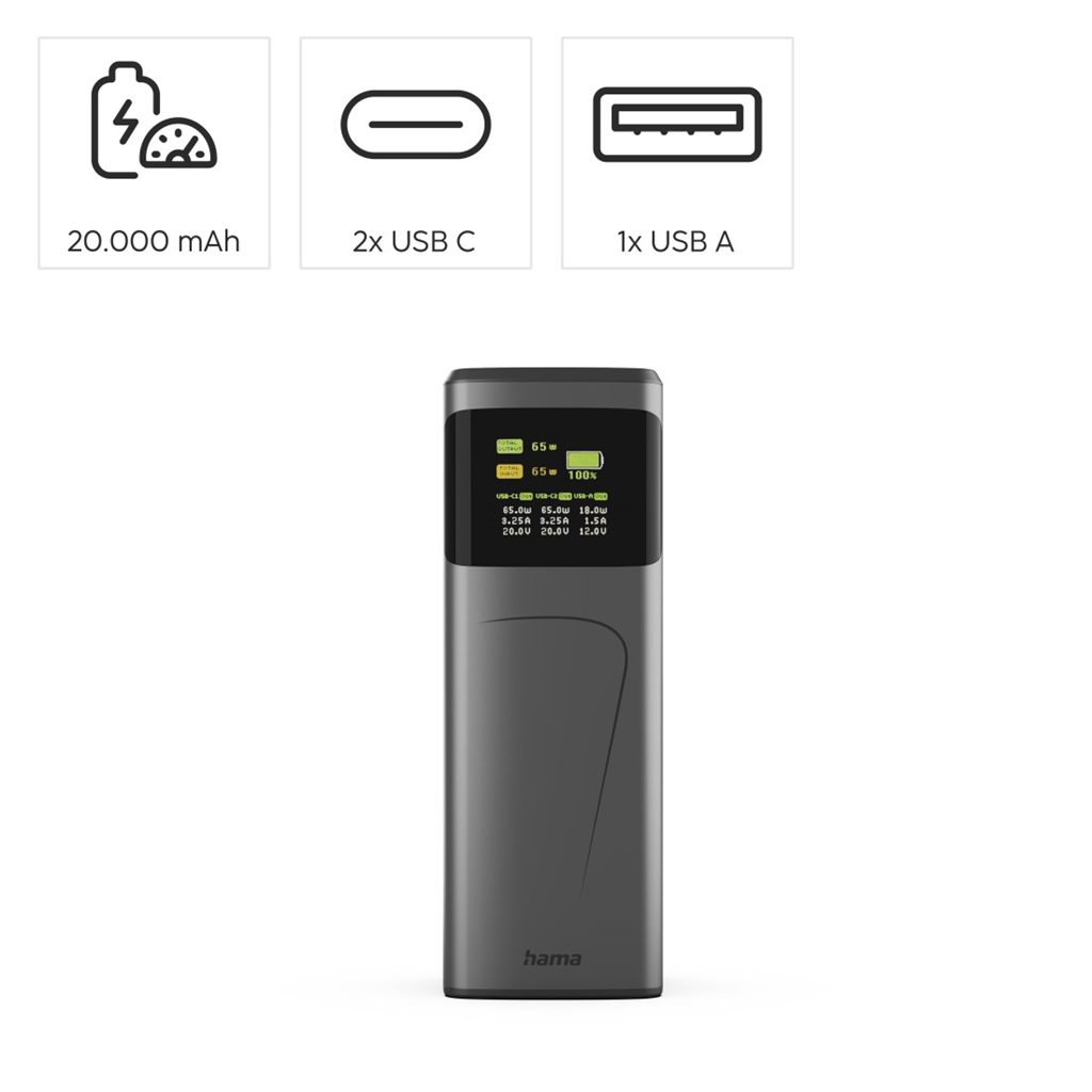Powerbanka má celkový výstupní výkon max. 65 W. Připojíte-li dvě zařízení k oběma USB-C zásuvkám, výkon se rozdělí na 45 W a 20 W. Připojíte-li zařízení ke všem třem zásuvkám, výkon se rozdělí na 45 W pro jednu USB-C zásuvku, 7,5 W pro druhou USB-C a 7,5 W pro USB-A zásuvku.