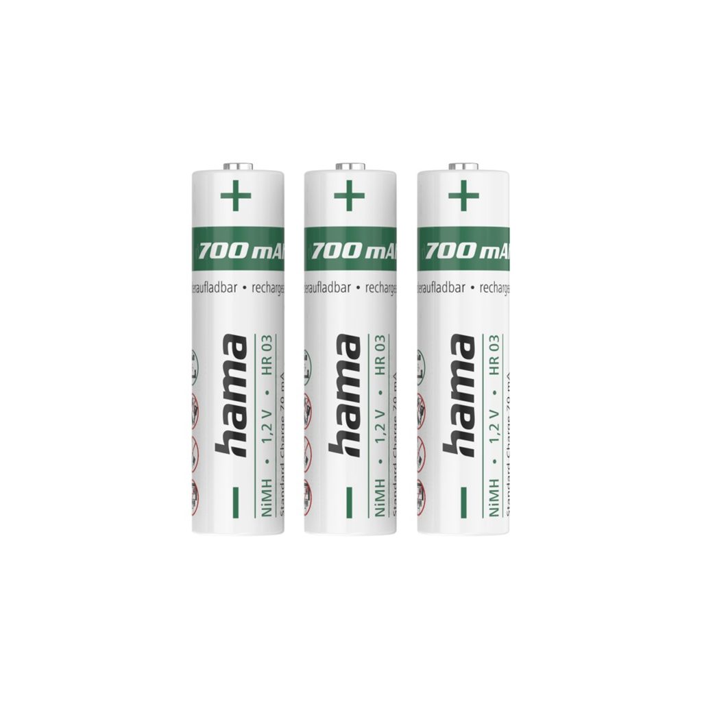 - velikost AAA (R03, mikrotužka), kapacita 700 mAh, napětí 1,2 V