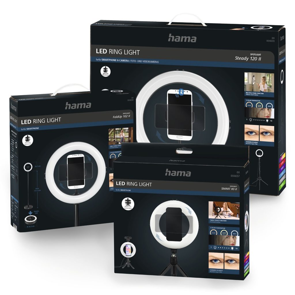 Hama SpotLight Steady 120 II, kruhové LED světlo 12" pro telefon, Bluetooth spoušť, stativ