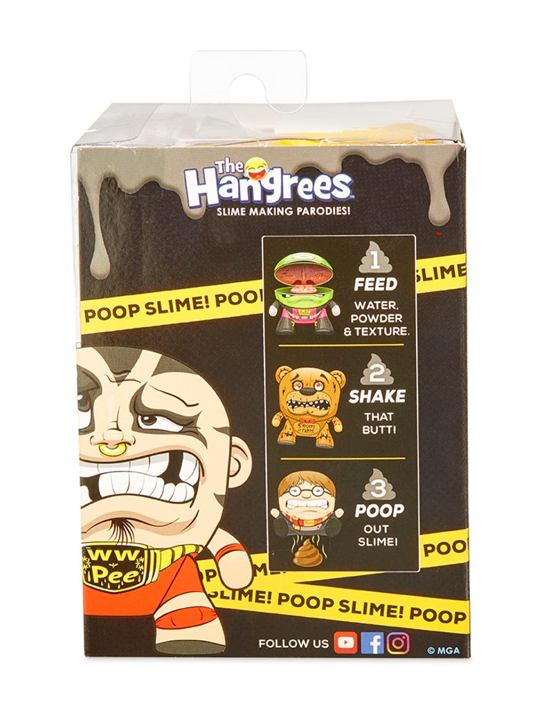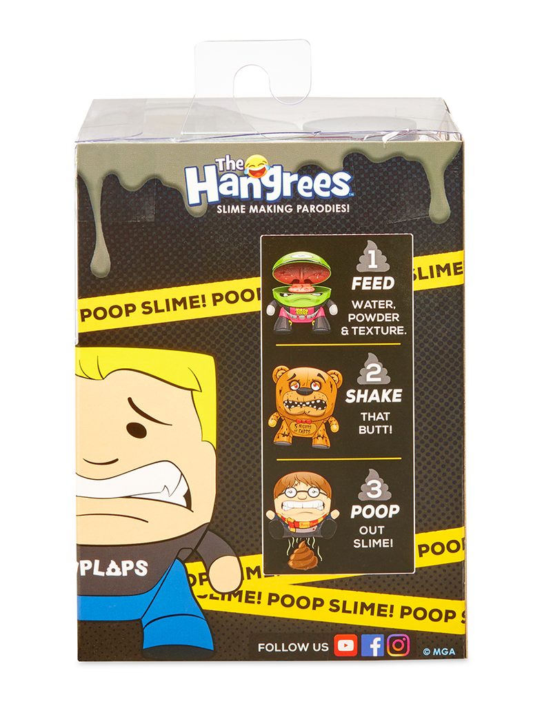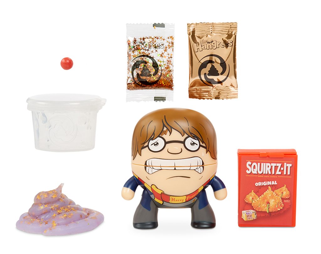 Nakrm Hladovce a pořádně s ním zatřes, vykadí sliz. Balení obsahuje mini toaletu pro uskladnění slizu. 6 různých Hladovců Doplňky parodující populární značky Obsahuje sliz