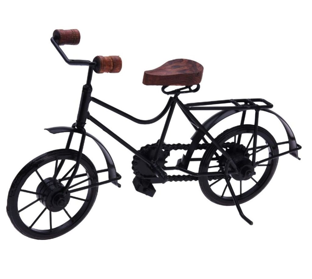 Stylová kovová dekorace v podobě jízdního kola přinese do vašeho interiéru retro kouzlo a jedinečný designový prvek. Detaily jako dřevěná držadla a pryžová kolečka dodávají autentičnost a eleganci. Ideální jako dekorace na polici, stůl nebo do vitríny.