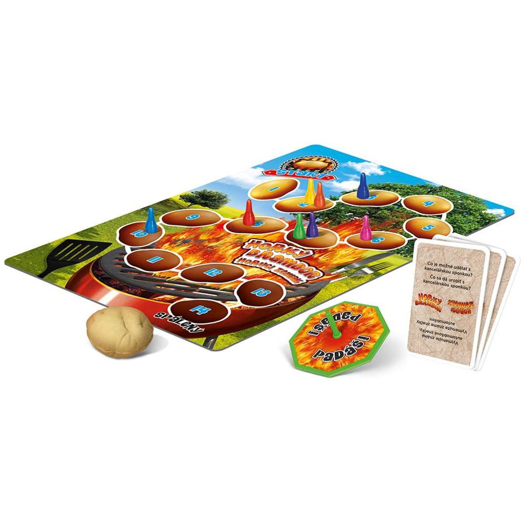 Před přečtením otázky roztočíte káču, která měří čas na odpovědi. Dokud se točí, musí všichni odpovídat na stejnou otázku. Ale pozor! Odpovědi se nesmí opakovat a musí dávat smysl. Jakmile se káča zastaví, tak hráč, u kterého zůstala brambora, prohrál herní kolo a postoupí o jedno kolo dále ve své cestě přes rozpálený gril.