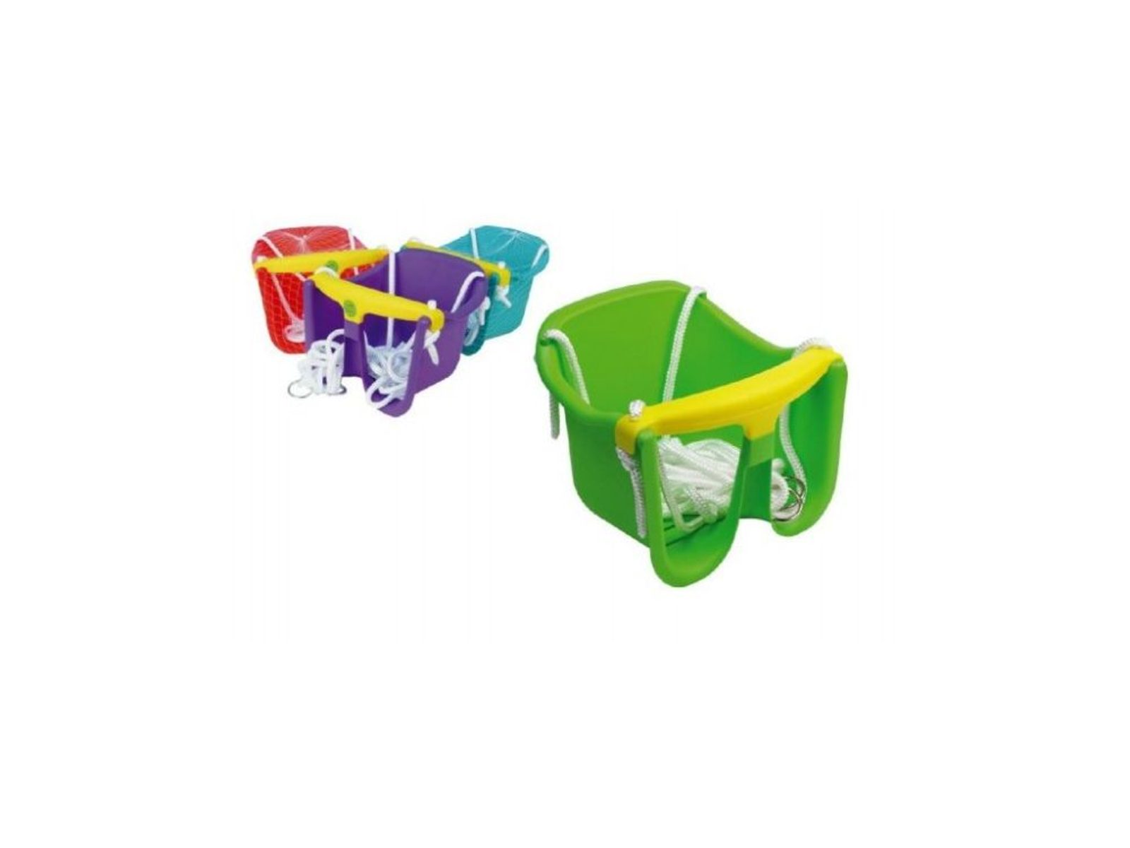 Varianta dětské závěsné houpačky. Vzhledem ke své konstrukci a bezpečnostní pojistce je určena pro velmi malé děti, ale maximálně do 3 let věku. Rozměr: velikost sedáku 25 x 17 cm, výška opěrátka 23 cm. Délka lan 100-170cm. V nabídce v barvě oranžové, zelené, modré a fialové.