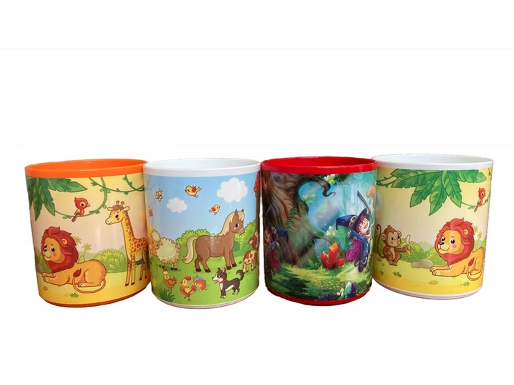 hrníček 0,25l ČARODĚJKY, DŽUNGLE, FARMA, bílý, oranž, zel, červ. plast