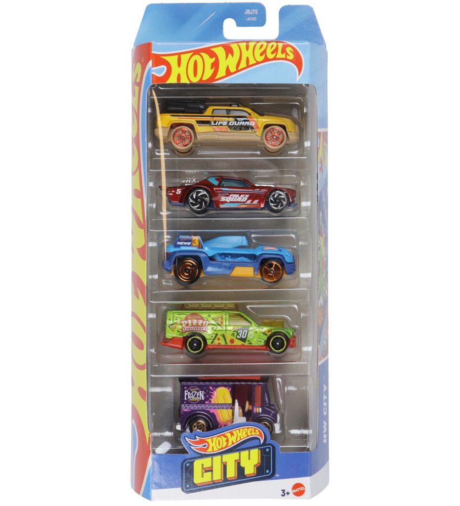 Tematické balení angličáků po 5 kusech. Hot Wheels jsou tanejžhavější kola!