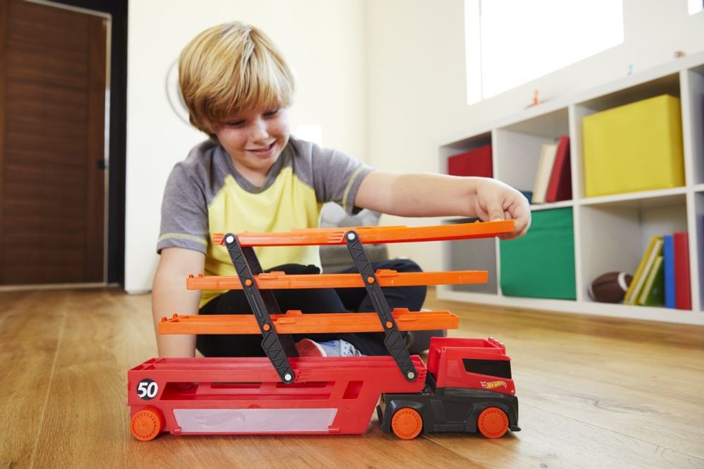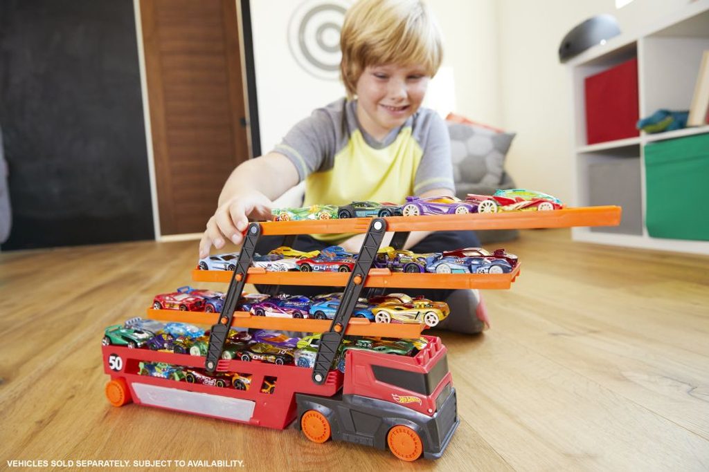Užij si parádní dobrodružství s tímto mega tahačem od Hot Wheels®, který s sebou přiváží zcela nová autíčka. Nalož do tohoto mega tahače více než 5 autíček díky šesti rozšířitelným patrům, a to je teprve začátek! Připoj mega tahač k oranžodráze Hot Wheels®, rozjeď to na plný plyn v klasickém závodě bok po boku a zjisti, které z tvých autíček je to nejrychlejší!